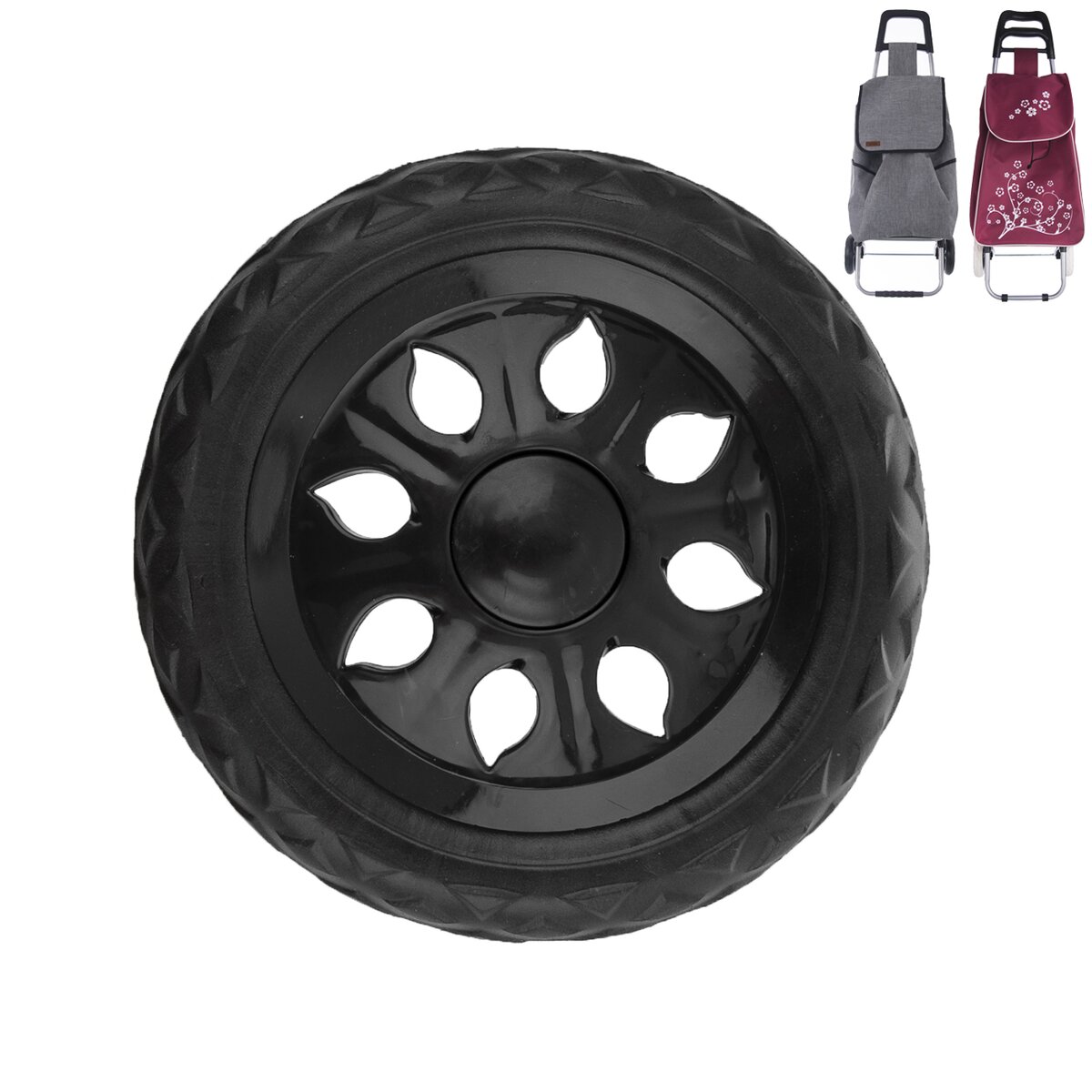 Kód produktu 181725Čierne náhradné kolieska priemeru 16 cm k nákupnej taške, v sade 2 kusov.