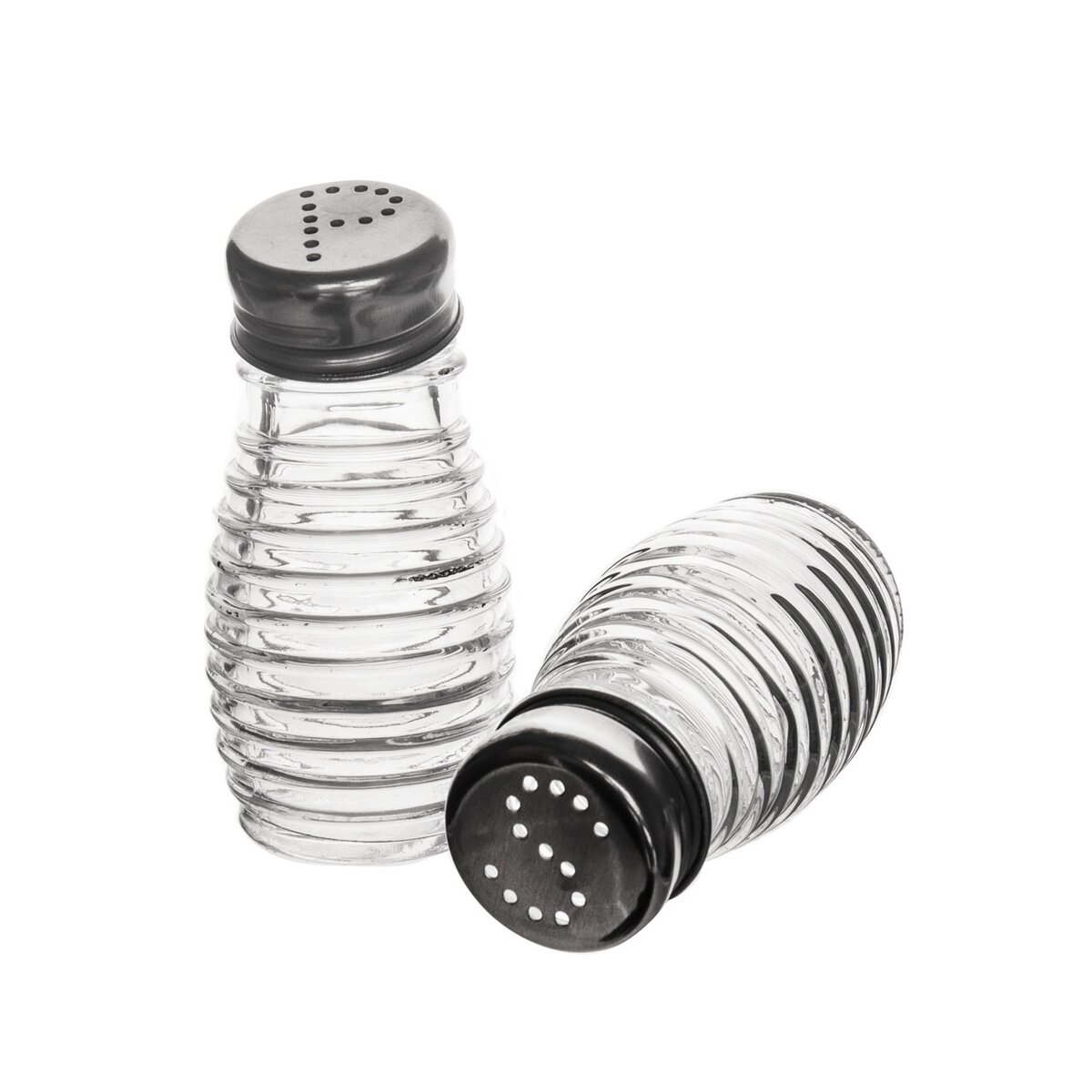 Praktické duo, vďaka ktorému budete mať soľničku a koreničku neustále po ruke. Sklenené nádoby sú zdobené výrazným vrúbkovaním.