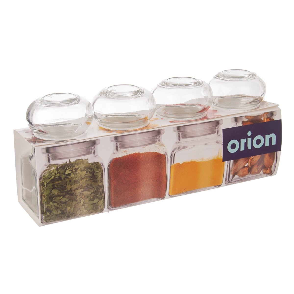 Kód produktu 153557Sada 4 hranatých sklenených koreničiek s viečkom objem 120 ml na uloženie korenia, byliniek, dochucovadiel.