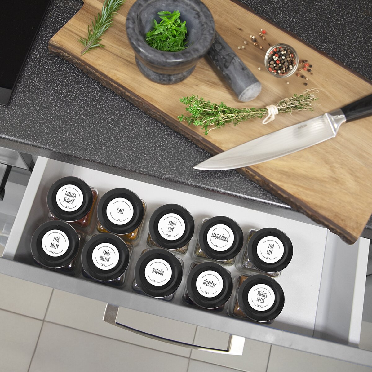 Na ich označenie v zásuvke alebo v polici je možné použiť štýlové samolepky WHITELINE alebo BLACK .