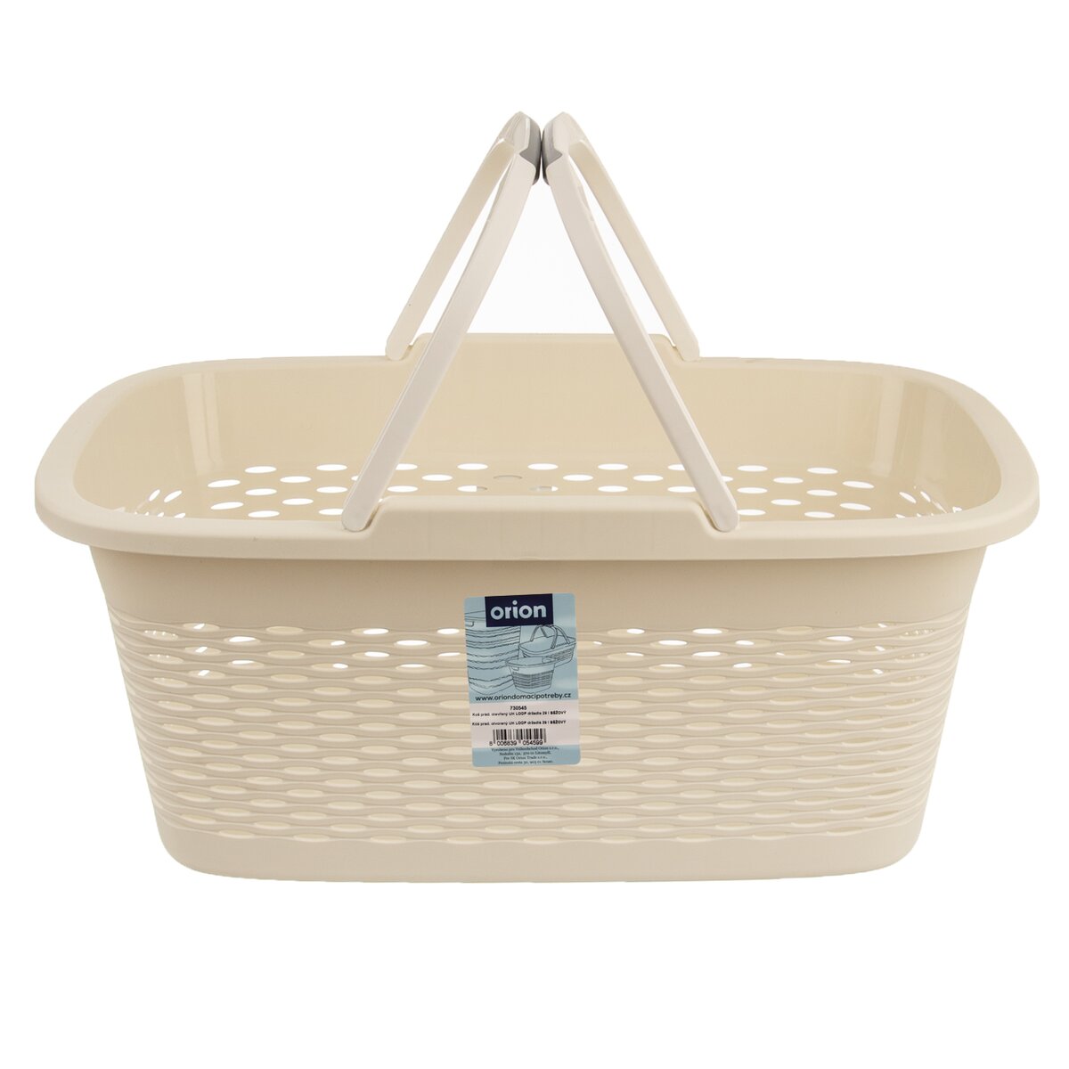 Kód produktu 730545Béžový plastový kôš LOOP s dvoma sklápacími držadlami a dierovaným povrchom, vo veľkosti 58x37,5x24 cm, je vhodný na prenášanie čistej vypranej bielizne a najrôznejších vecí v domácnosti.