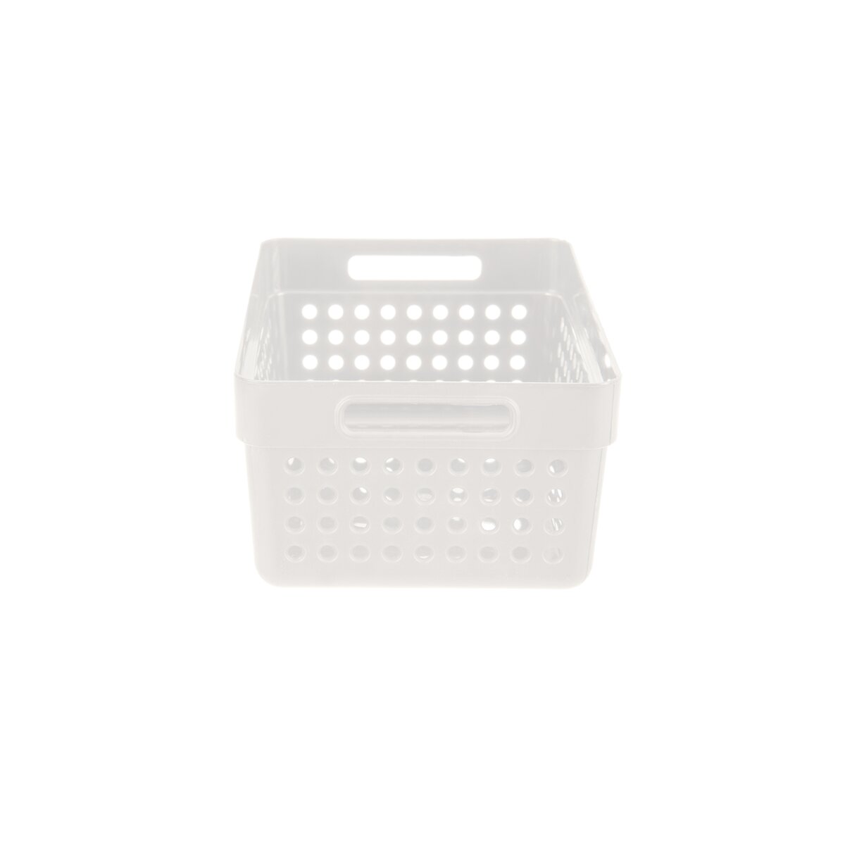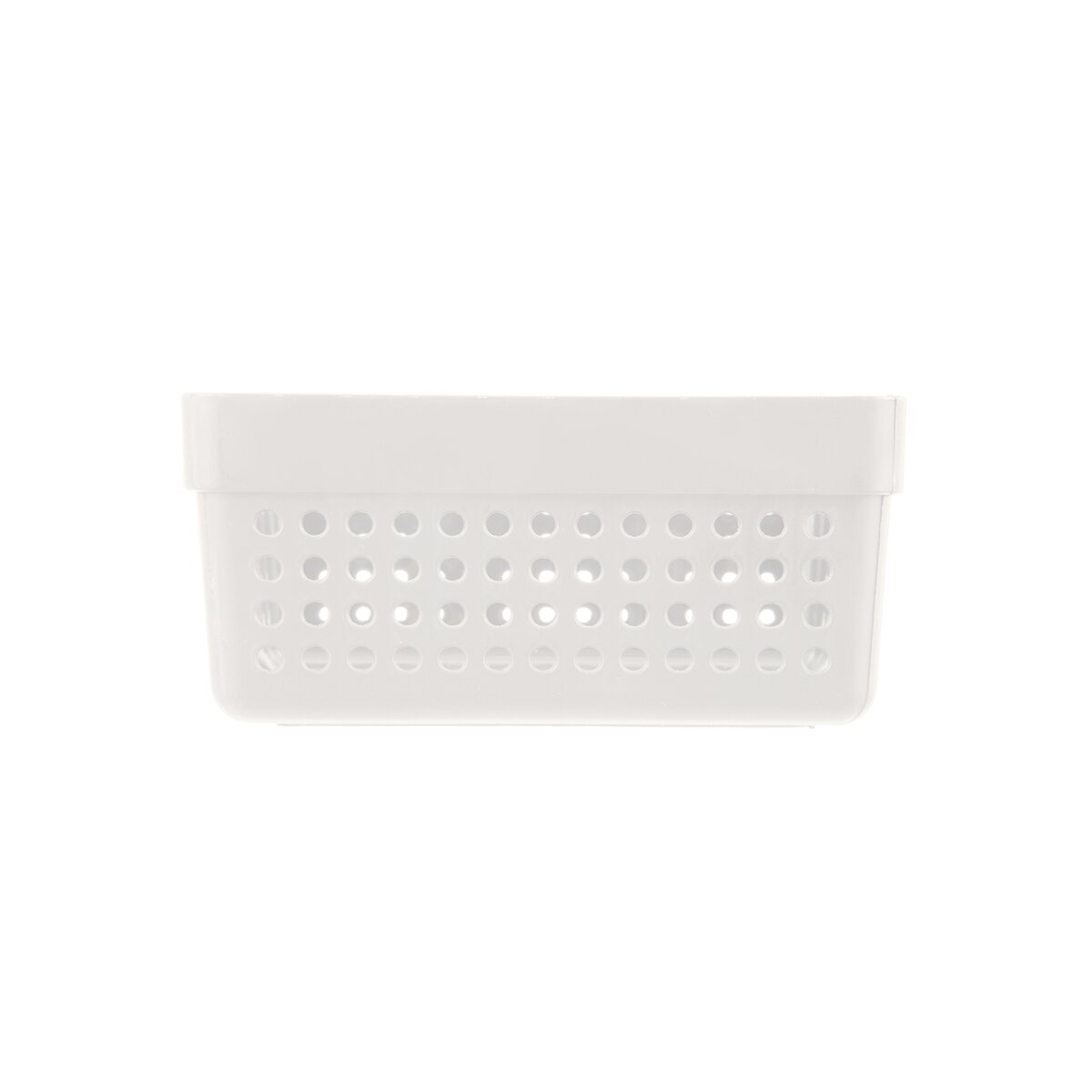 Kód produktu 731640Plastový malý košík v bielej farbe má veľkosť 15,5x11,5x7,3 cm a hodí sa na uloženie koreničiek, kancelárskych potrieb i drobnej kozmetiky.
