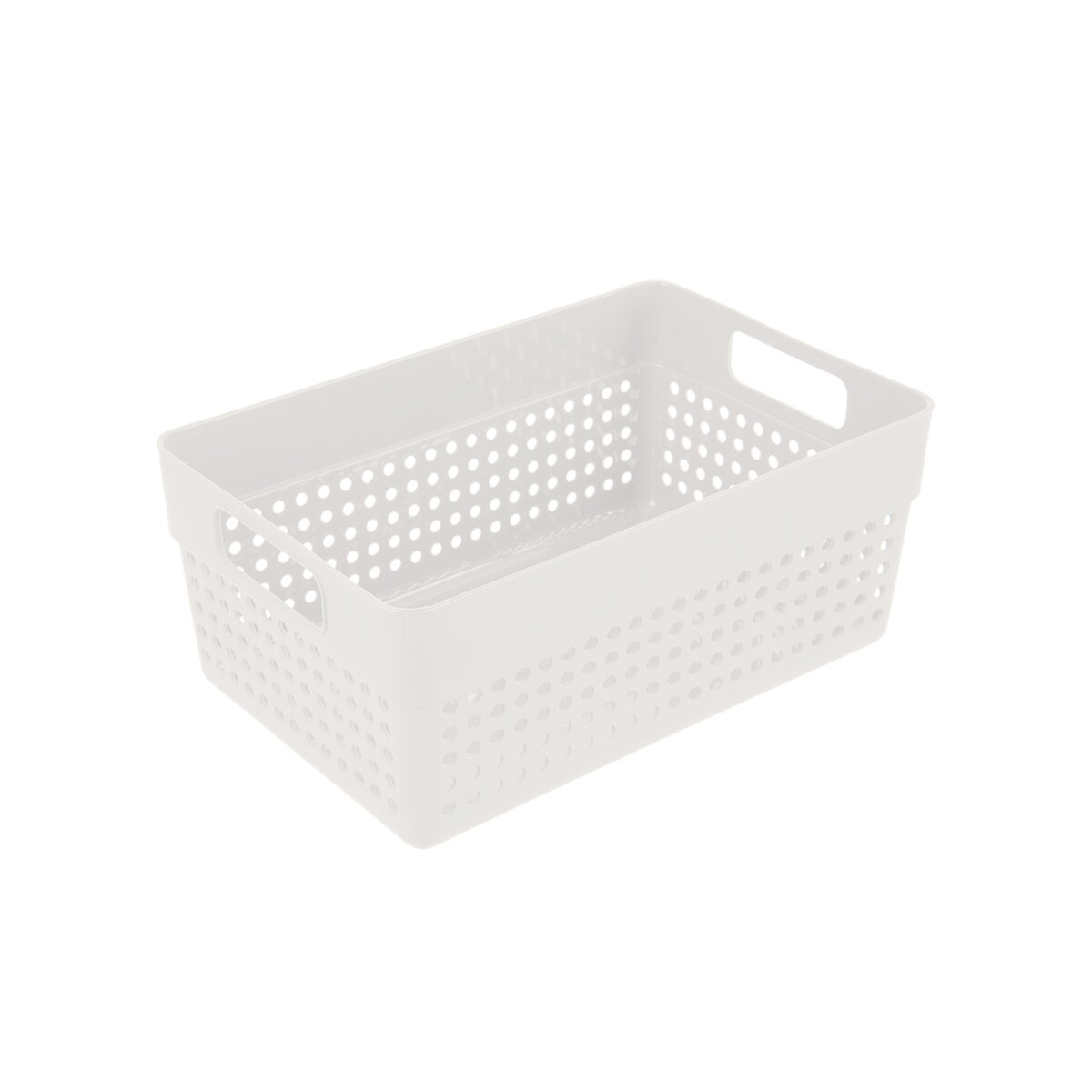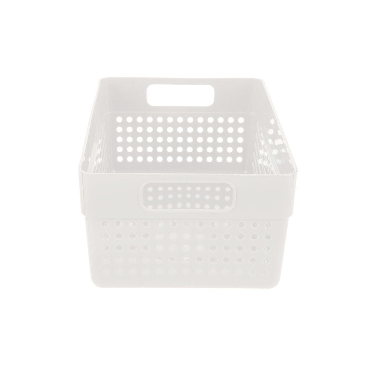 Kód produktu 731642Plastový košík v bielej farbe má veľkosť 23,5x15,5x10 cm a hodí sa na uloženie koreničiek, kancelárskych potrieb i drobnej kozmetiky.