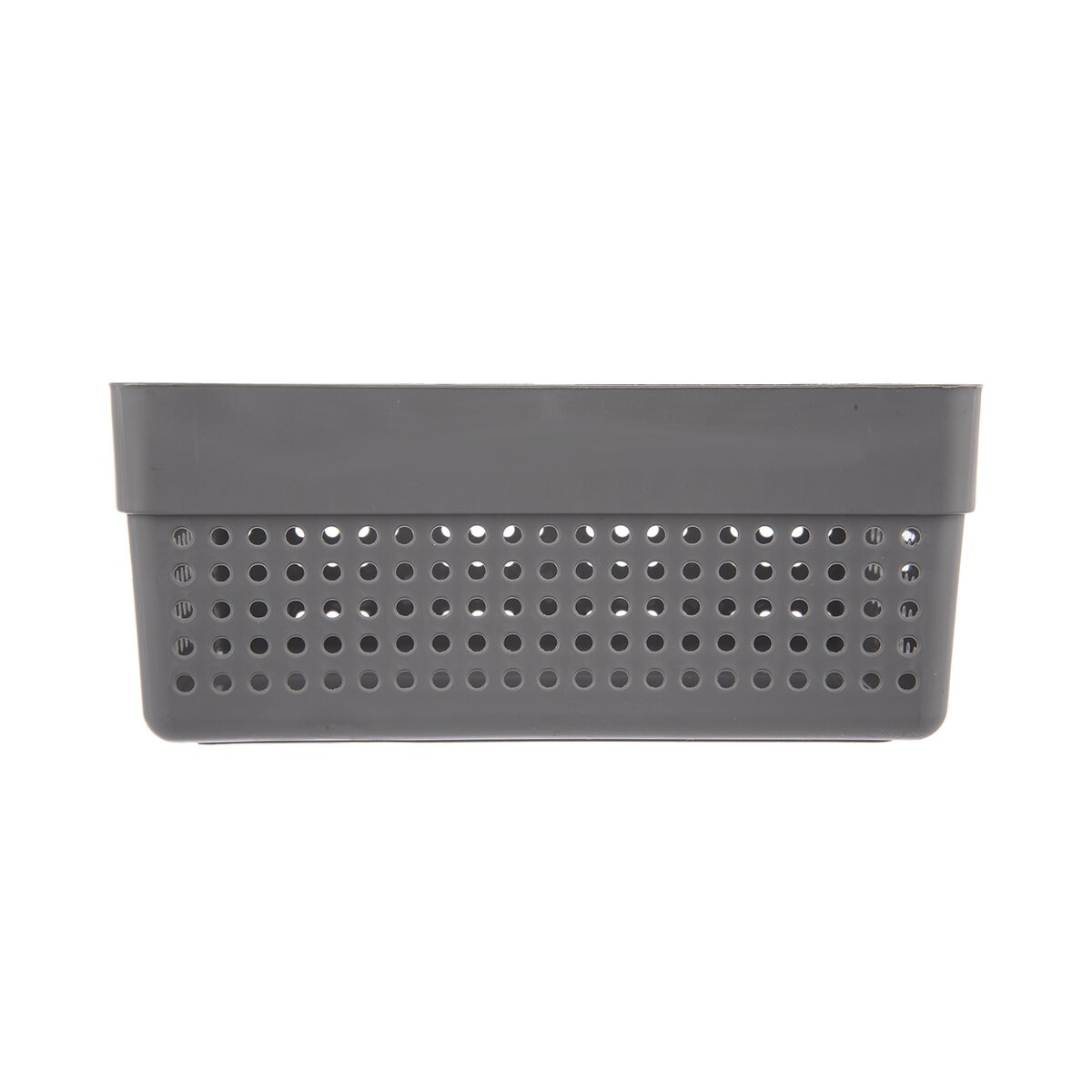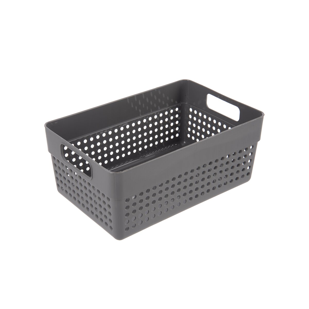 Kód produktu 731643Plastový košík v šedej farbe má veľkosť 23,5x15,5x10 cm a hodí sa na uloženie koreničiek, kancelárskych potrieb i drobnej kozmetiky.