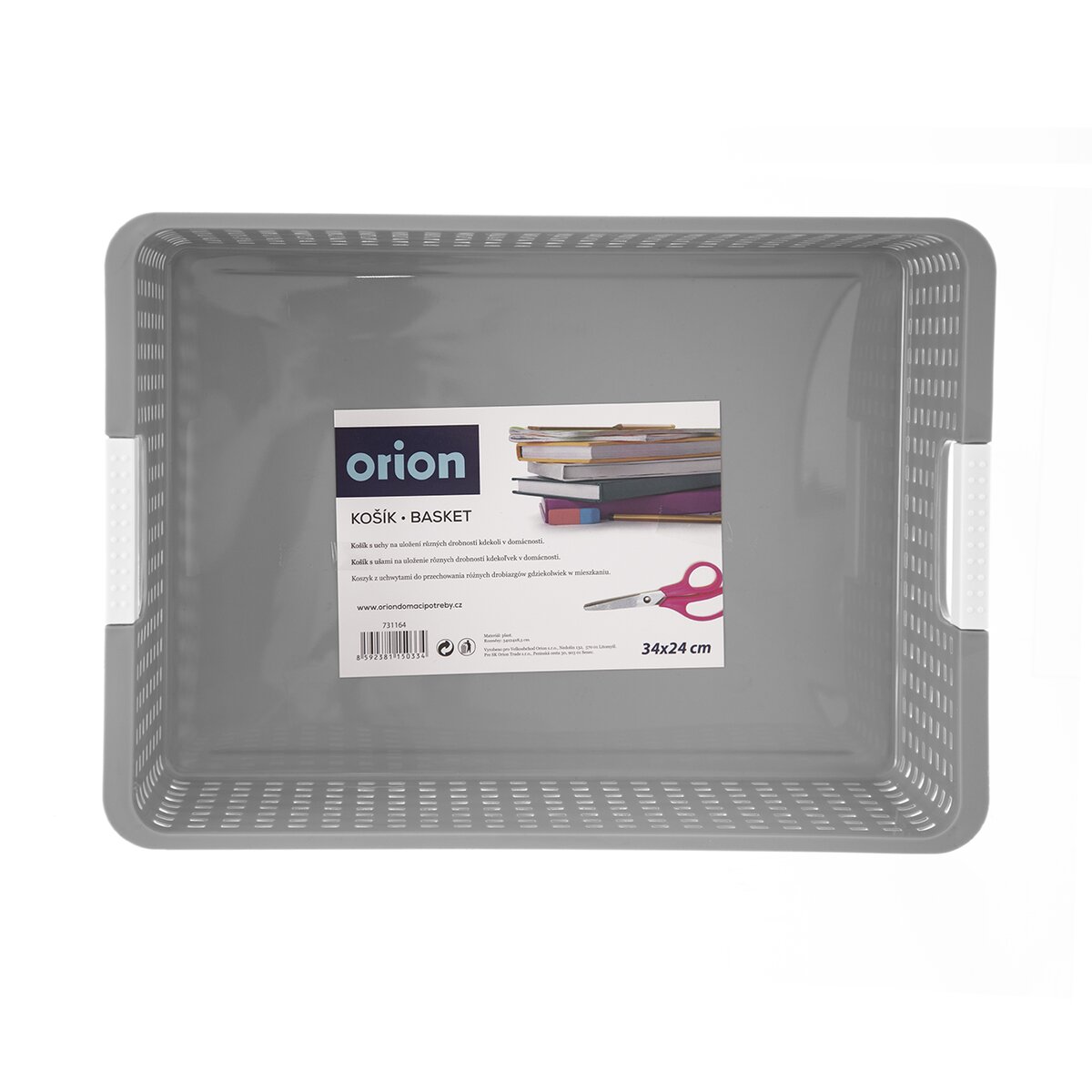 Košík s ušami na uloženie rôznych drobností kdekoľvek v domácnosti. Materiál: plast. Farebný assort. Rozmery: 34x24x8,5 cm.