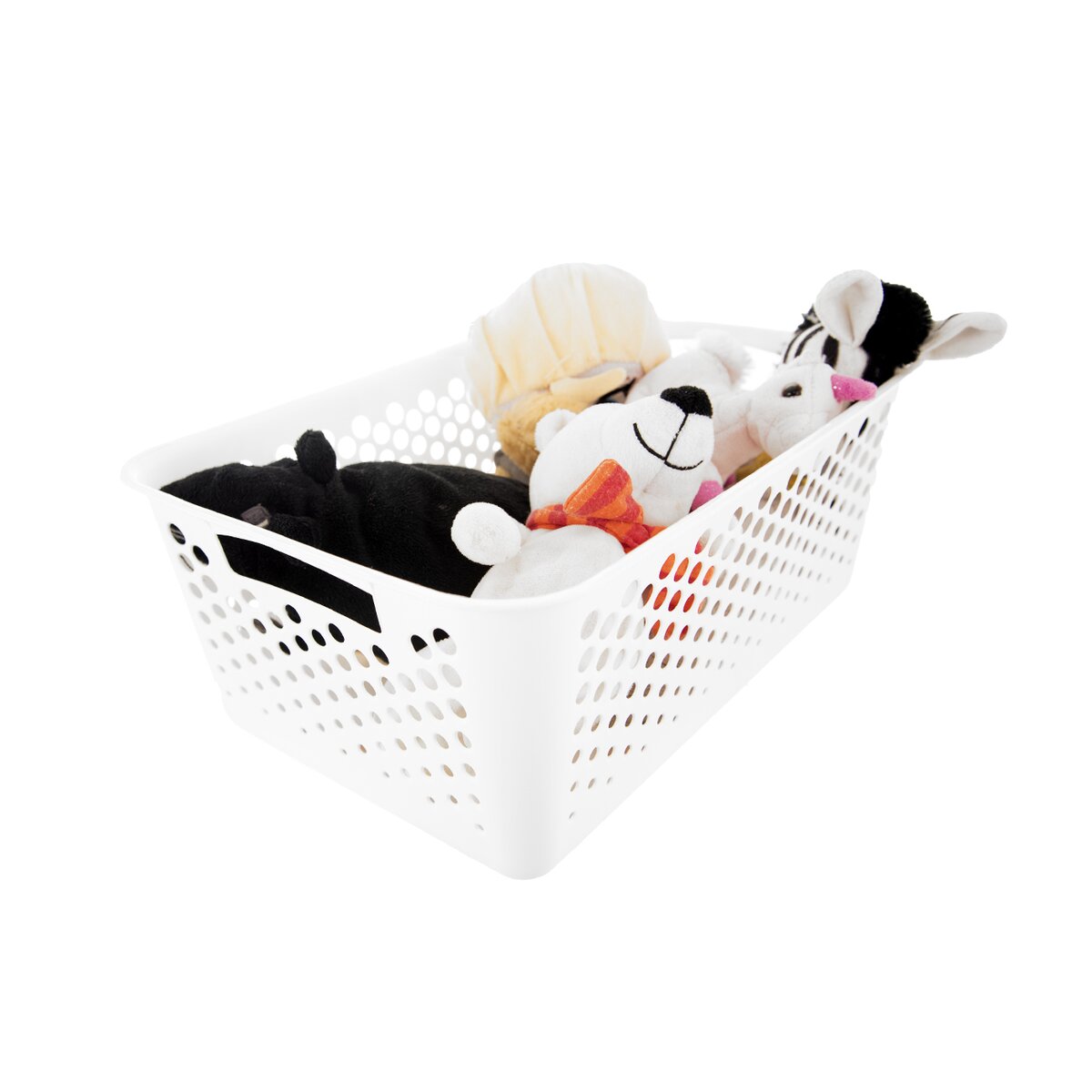 Kód produktu 731613Biely plastový košík s rozmermi 36,5x25,5x14,5 cm slúži na uloženie najrôznejších predmetov v domácnosti.