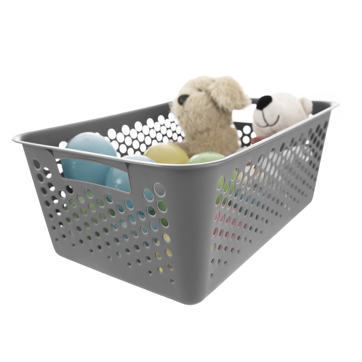 Vďaka kruhovým otvorom a držadlám na kratšej strane budete mať prehľad o uložených veciach a ľahko ho presuniete alebo prenesiete.