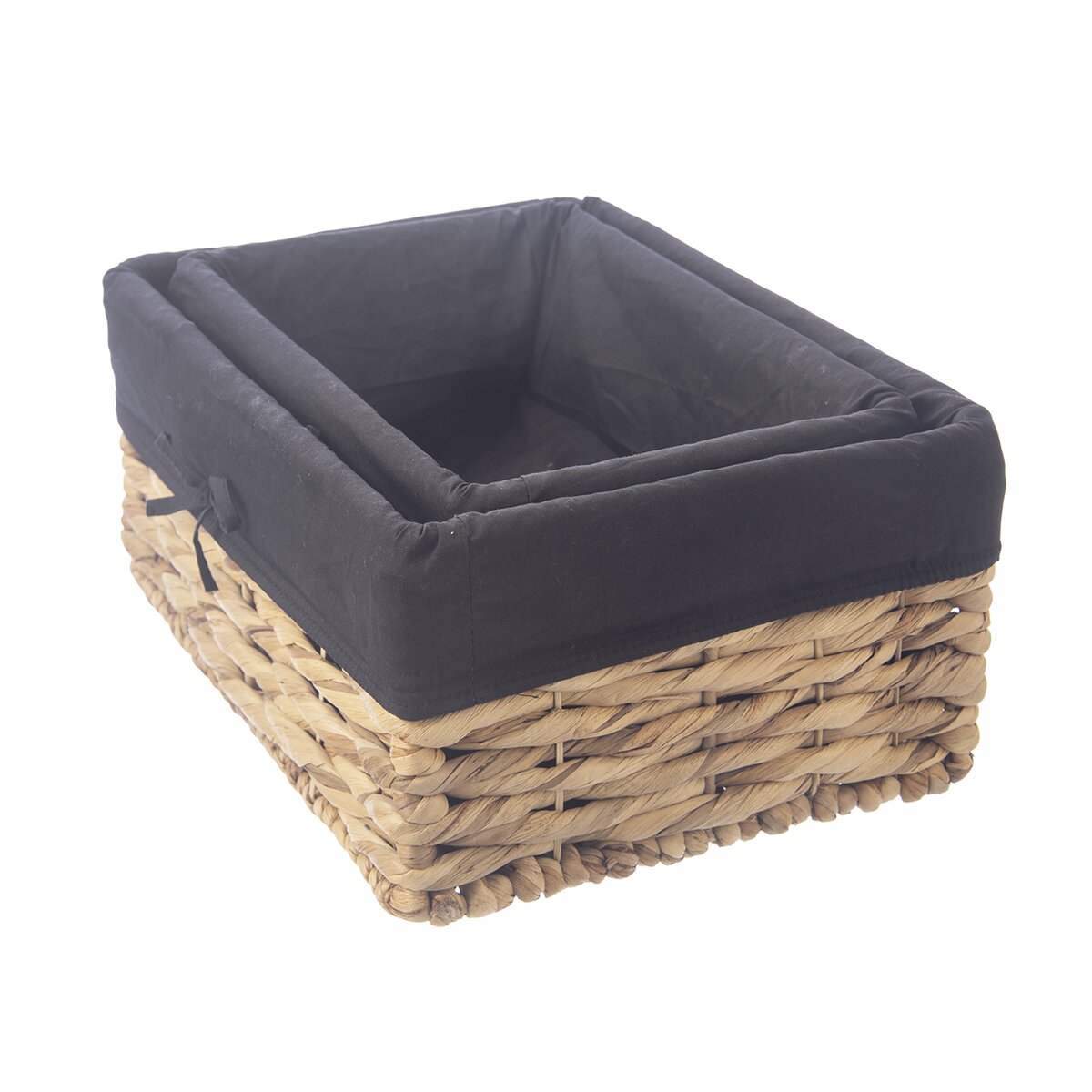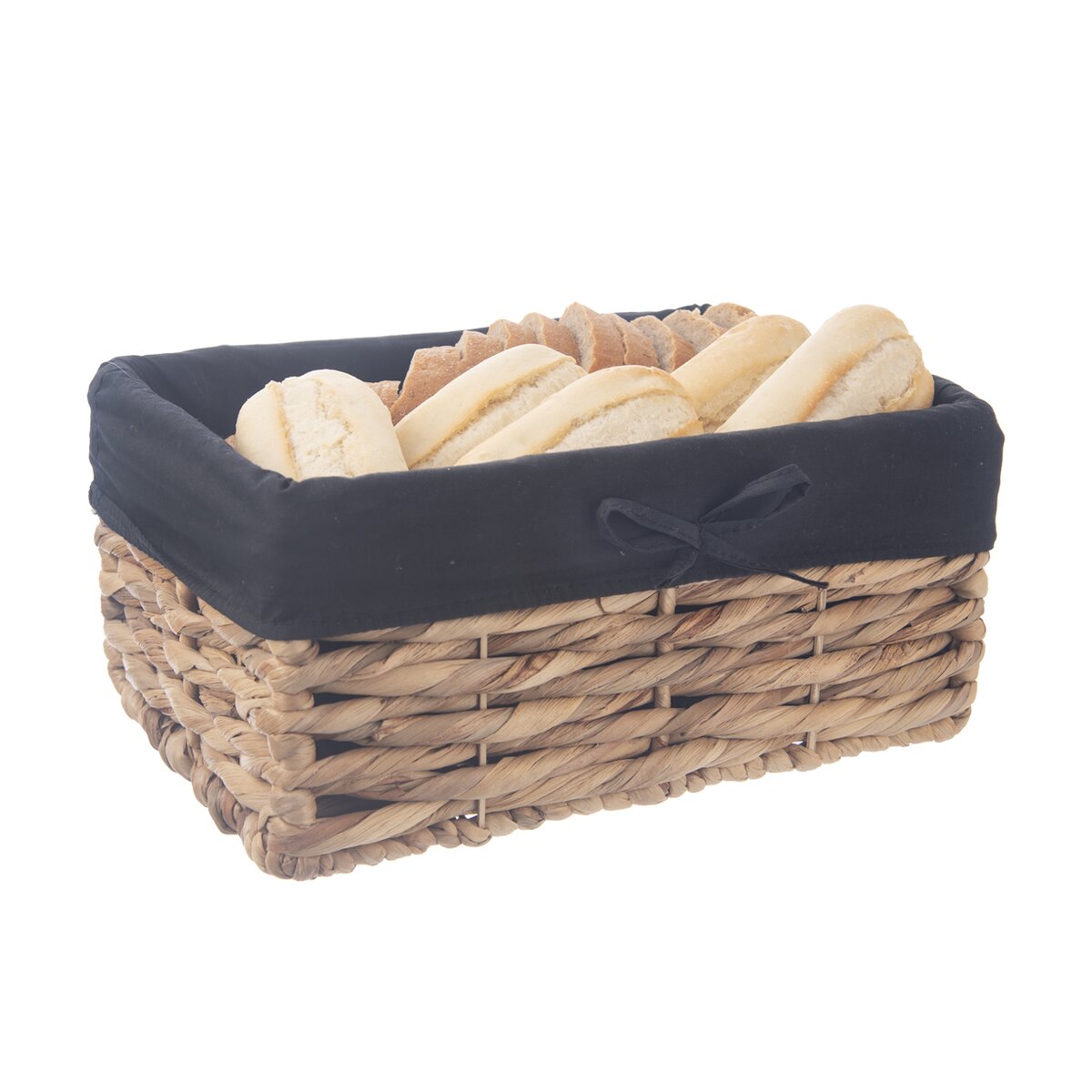 Kód produktu 731628Hranatý košík s rozmerom 36x26x16,5 cm z vodného hyacintu je doplnený bavlnenou čiernou vložkou. Vhodný na ukladanie a servírovanie pečiva aj na uloženie rôznych drobností nielen v domácnosti.