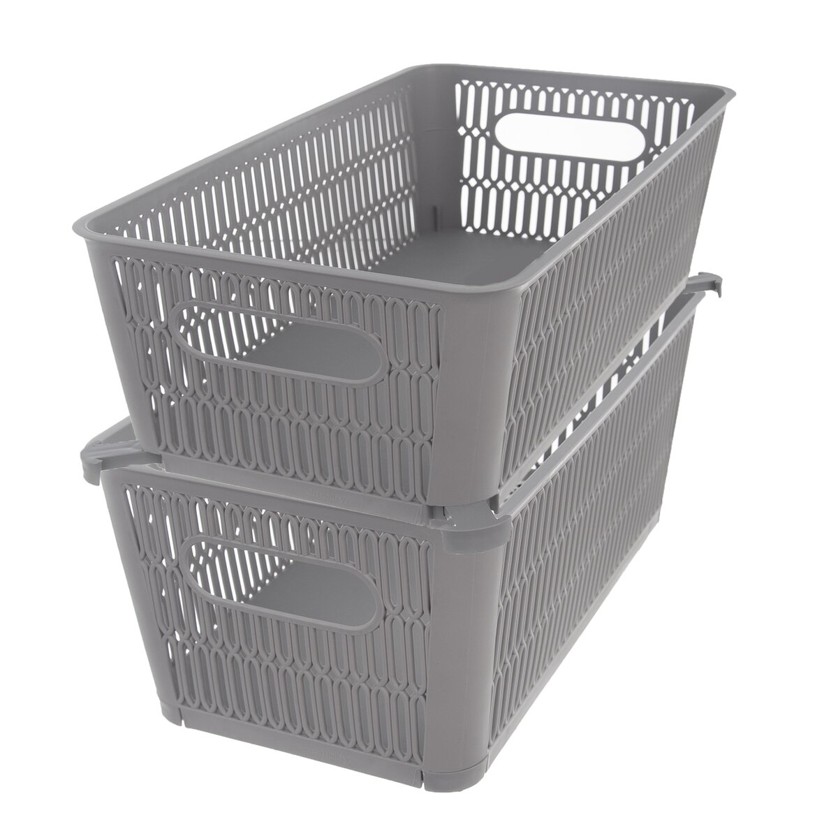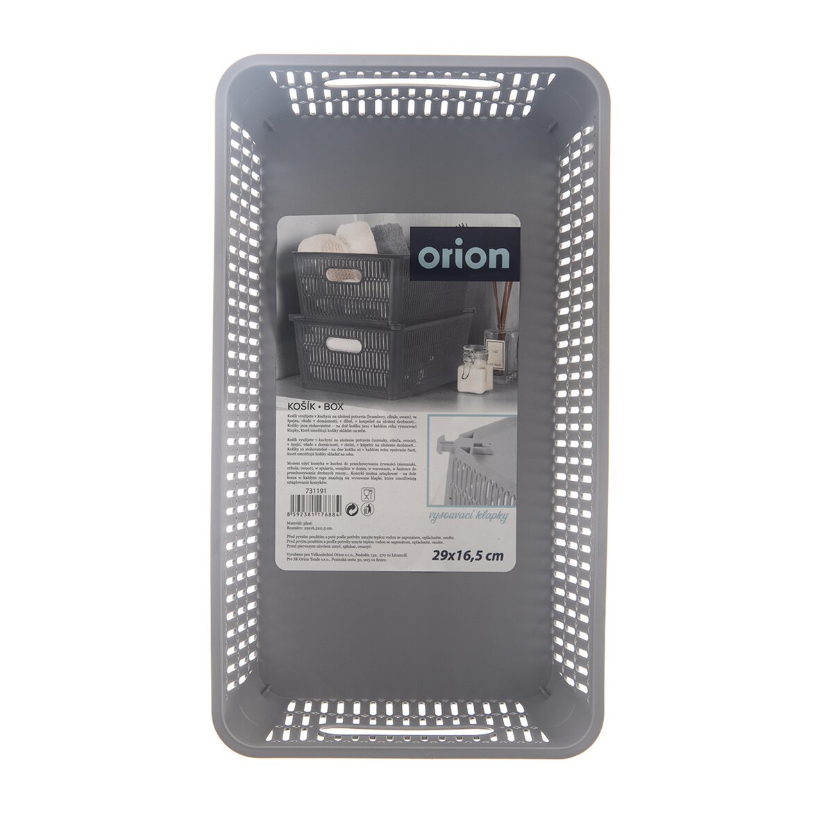 Šedý košík NESTA má navyše vychytávku v podobe vysúvacích klapiek v dolnej časti, z rohov možno klapky vysunúť a uložiť tak niekoľko košíkov na seba. Je vyrobený z kvalitného plastu PP.