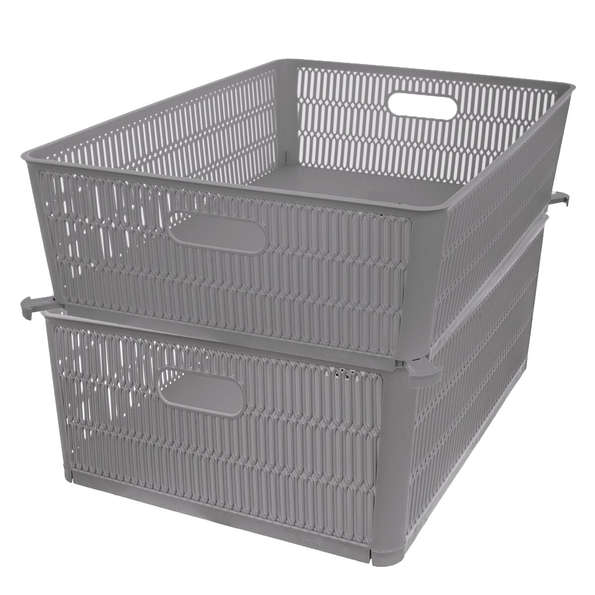 Väčší šedý košík NESTA má navyše vychytávku v podobe vysúvacích klapiek v dolnej časti, z rohov je možné klapky vysunúť a uložiť tak niekoľko košíkov na seba. Je vyrobený z kvalitného plastu PP.