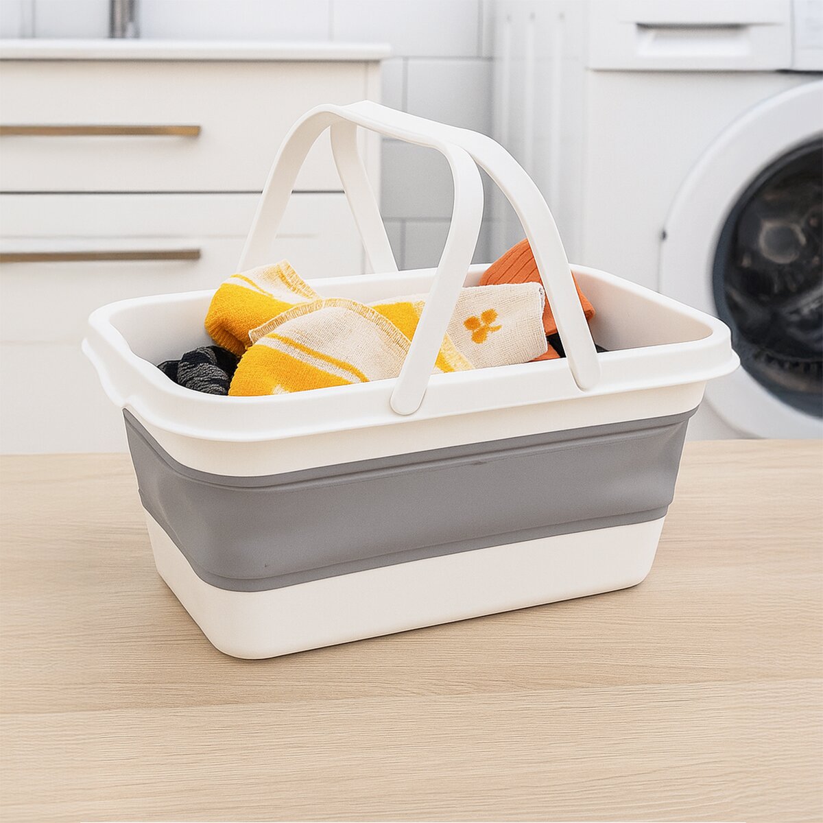 Kód produktu 731637Praktický skladací košík z plastu a silikónu je určený na prenášanie najrôznejších vecí, slúži ako kôš na bielizeň určenú na pranie, na uloženie nákupov do auta a pod. Má univerzálne využitie, je veľmi skladný.
