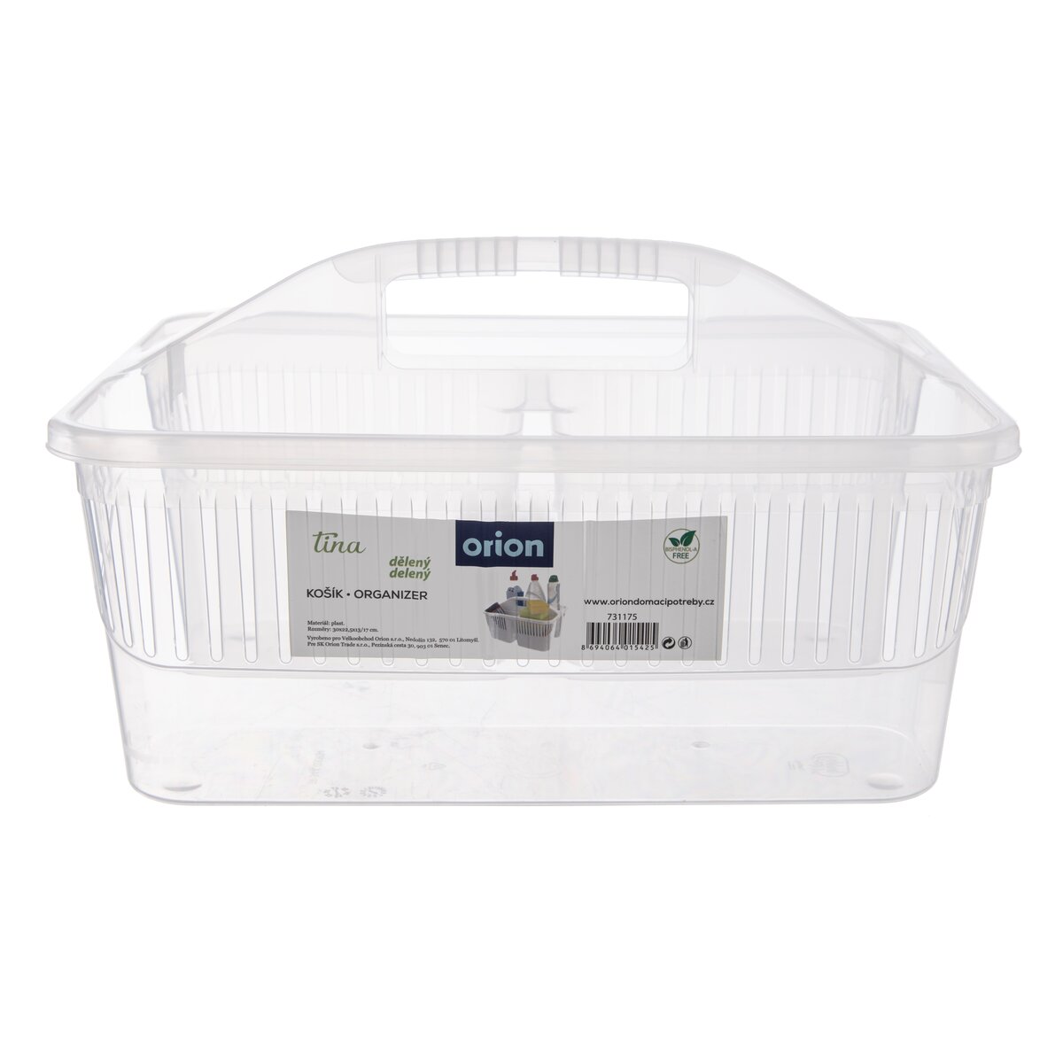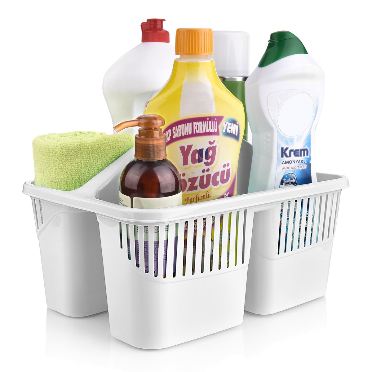 Kód produktu 731175Delený plastový košík s praktickým držadlom na uloženie čistiacich prostriedkov a ich prenášanie pri bežnom upratovaní domácnosti.
