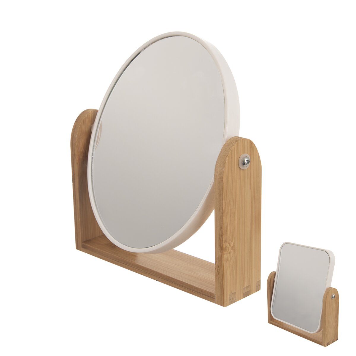 Kód produktu 510150Obojstranné zrkadlo WHITNEY v oválnom alebo hranatom prevedení, uložené v bambusovom stojane. Druhá strana zväčšuje obraz, takže umožní dokonalé líčenie alebo odličovanie.