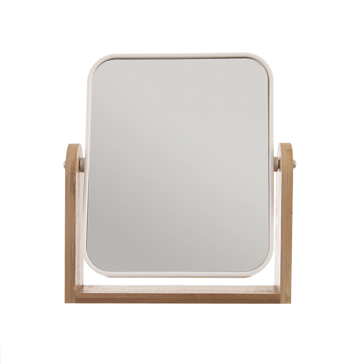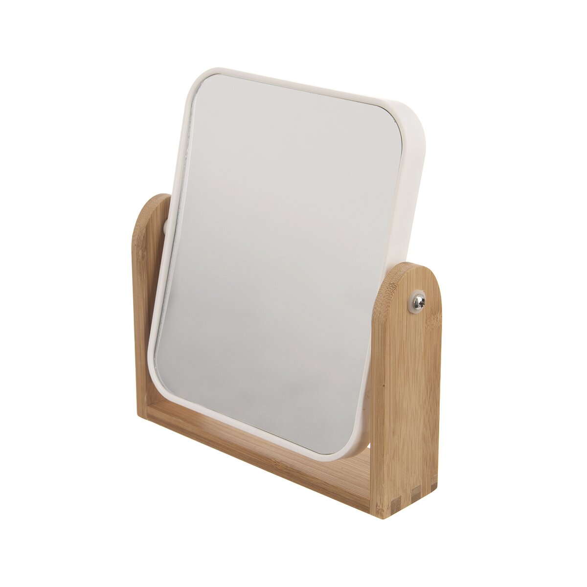 Kód produktu 510152Obojstranné zrkadlo WHITNEY v hranatom prevedení je uložené v bambusovom stojane. Druhá strana zväčšuje obraz, takže umožní dokonalé líčenie alebo odličovanie.