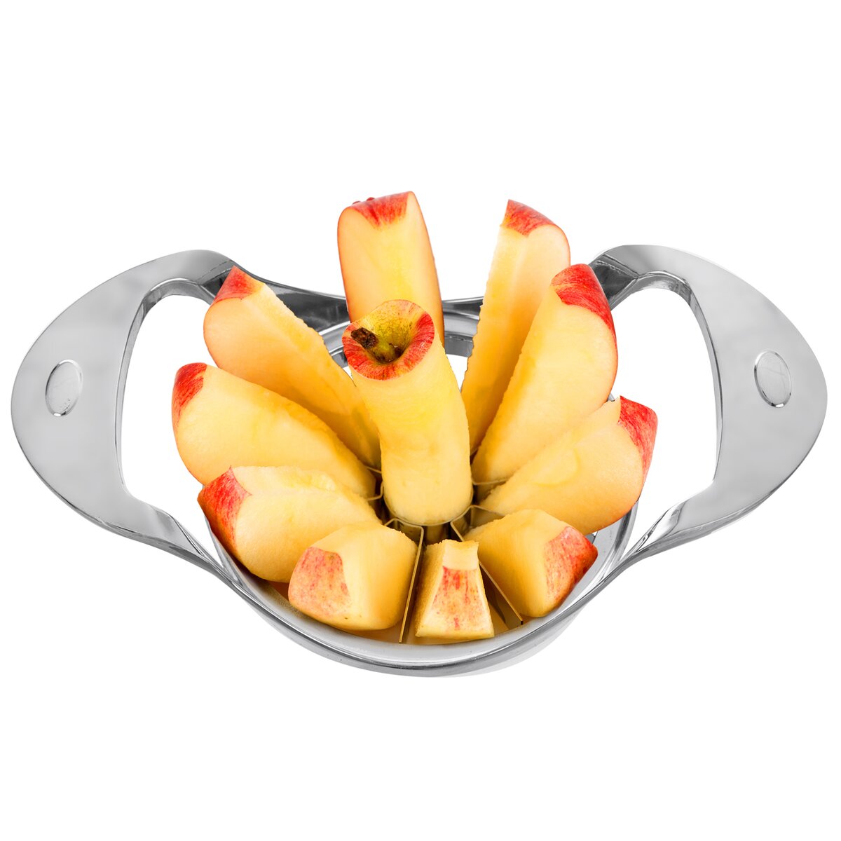 Krájač na jablká z pochrómovaného kovu jednoduchým zatlačením oddelí jadrovník a jablko naporcuje na osminky. Do jablčného koláča, ovocných tvarohových knedlí, na zahryznutie na výlete, na desiatu do krabíc a pod.