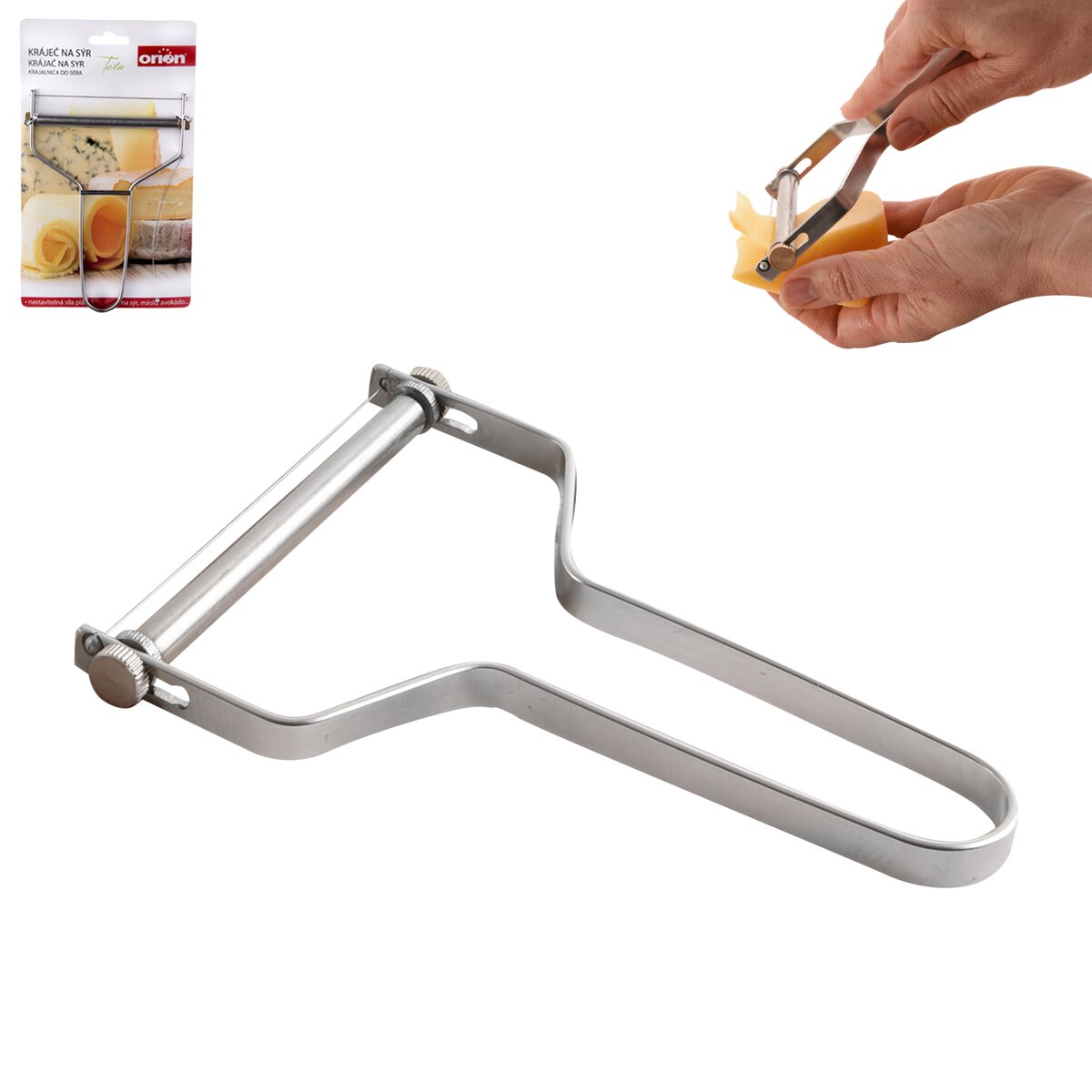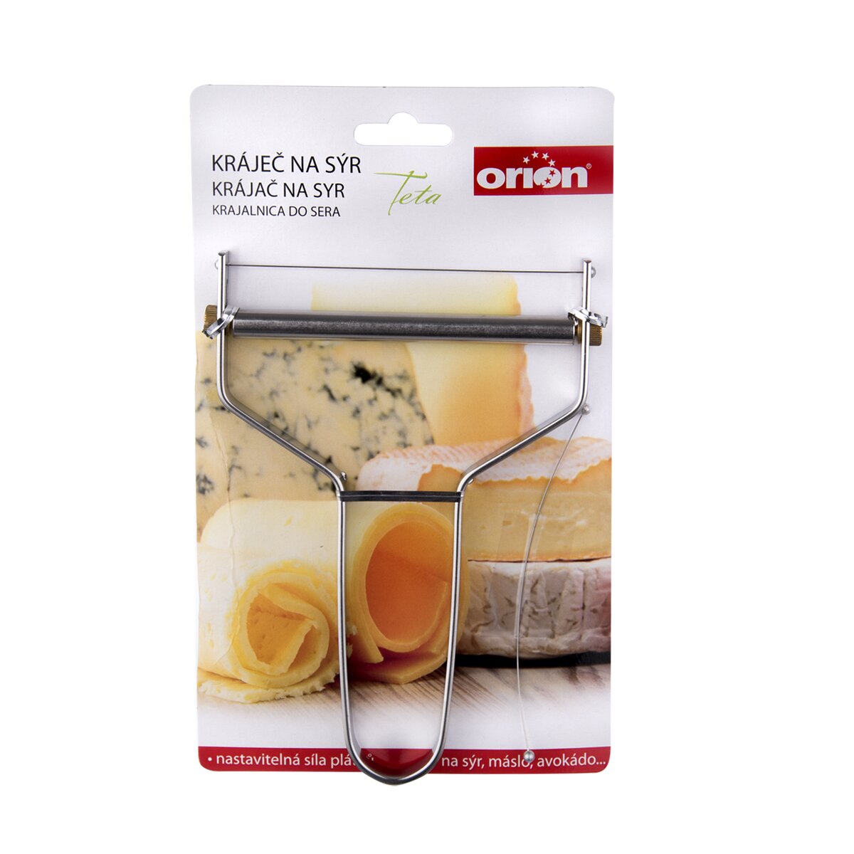 Kód produktu 130493Nerezový krájač so strunou na plátkovanie stredne tvrdých syrov, masla aj avokáda. Súčasťou je aj náhradná krájacia struna.