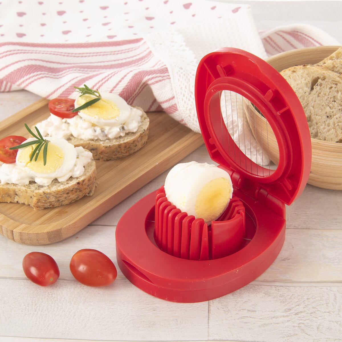Krájač na vajíčka vytvorí ľahko a rýchlo plátky alebo šestiny z varených vajíčok - presne tak, ako práve potrebujete. Môžete ho využiť na krájanie mäkkej varenej zeleniny.