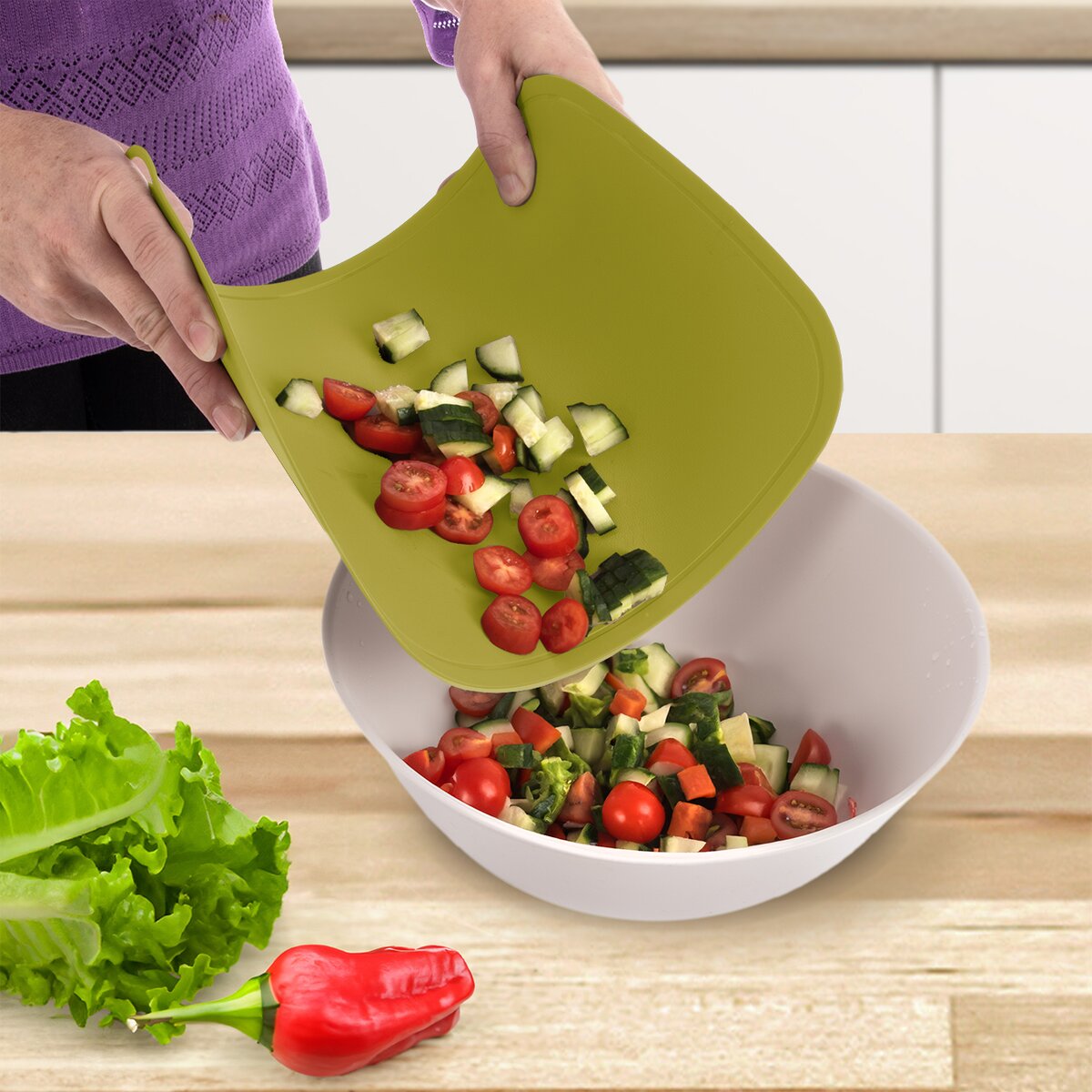 Navyše je tenká, takže pomôže aj pri zosypávaní nakrájaných potravín do misy, hrnca alebo na panvicu. To oceníte pri sypaní krájanej zeleniny do šalátovej misy, domácich rezancov do polievky alebo byliniek.