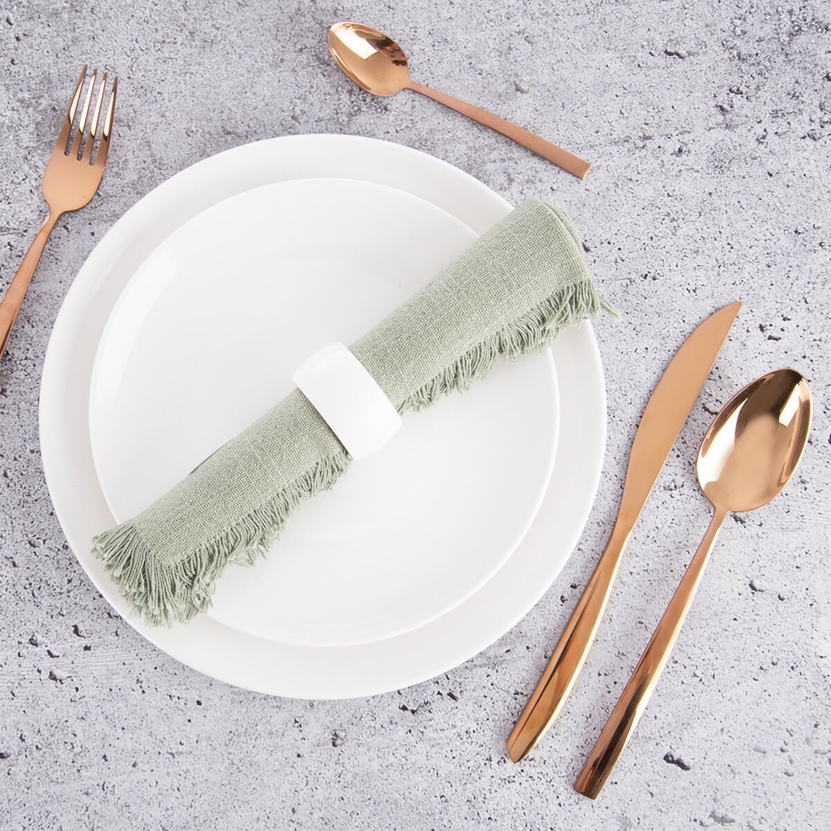 Biely krúžok na obrúsky je praktický pomocník, ako efektne uložiť látkový obrúsok na tanier. Pôsobí elegantne a ponúka rôzne spôsoby naaranžovania papierových alebo textilných obrúskov.