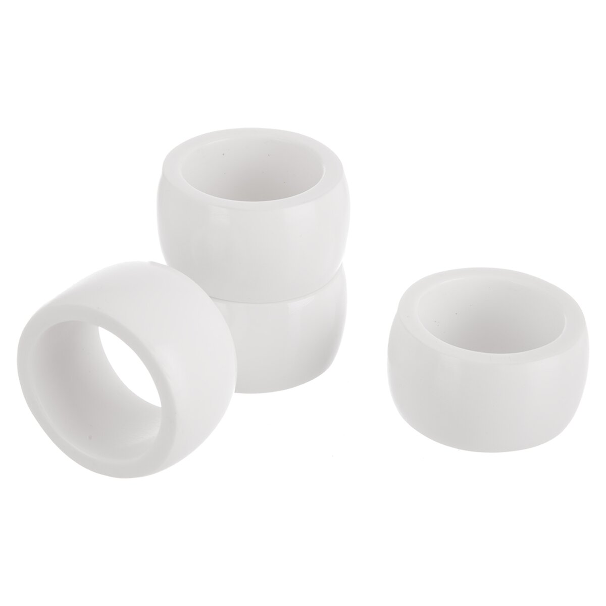 Kód produktu 832804Sada 4 bielych plastových krúžkov s priemerom 5 cm je určená na elegantné uloženie, naaranžovanie obrúskov. Hodí sa k bežnému stolovaniu, ktoré oživí, aj ako zaujímavý prvok na slávnostnej tabuli.
