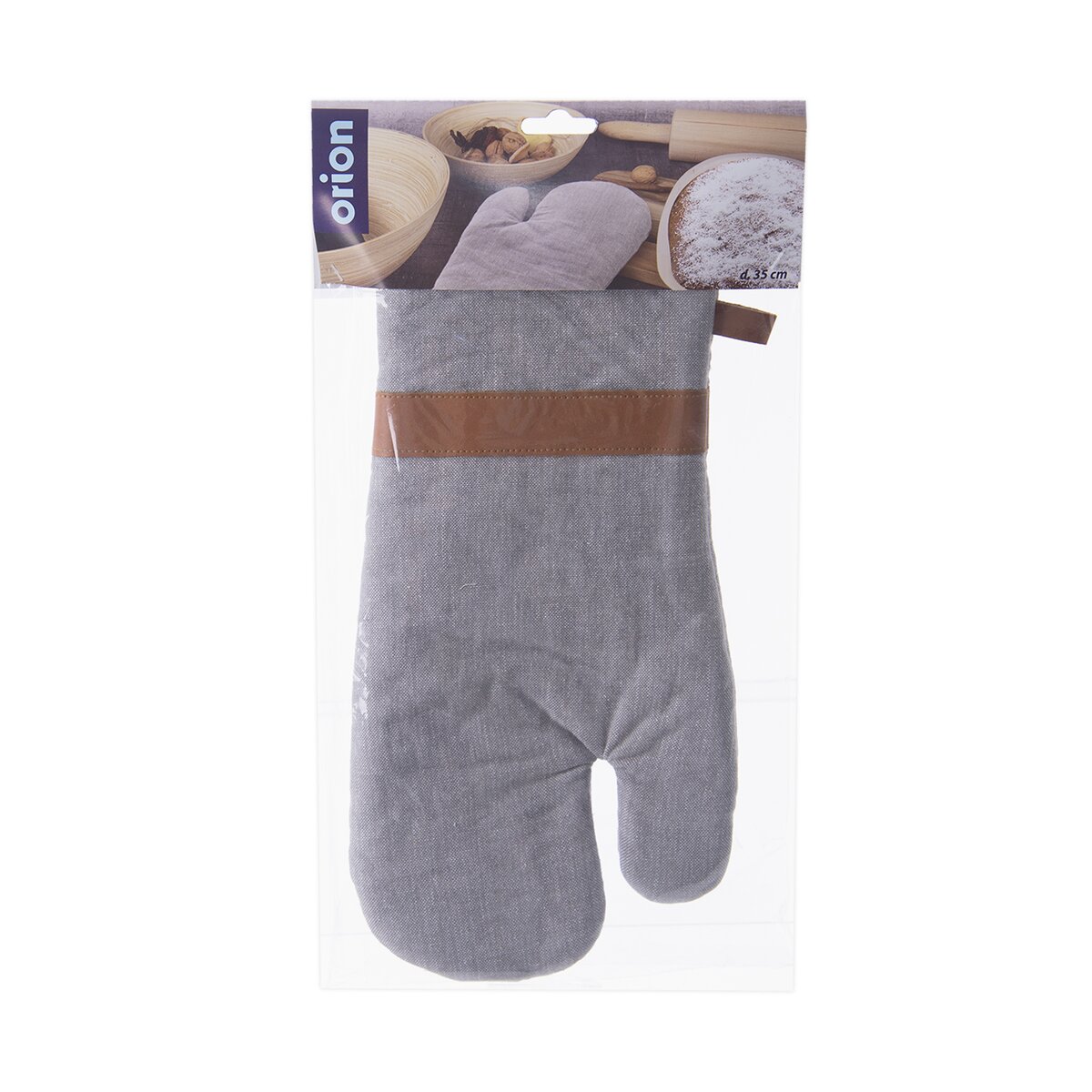 Kód produktu 152184Bavlnená kuchynská rukavica v šedom denim prevedení s koženými detailmi a pútkom na zavesenie.