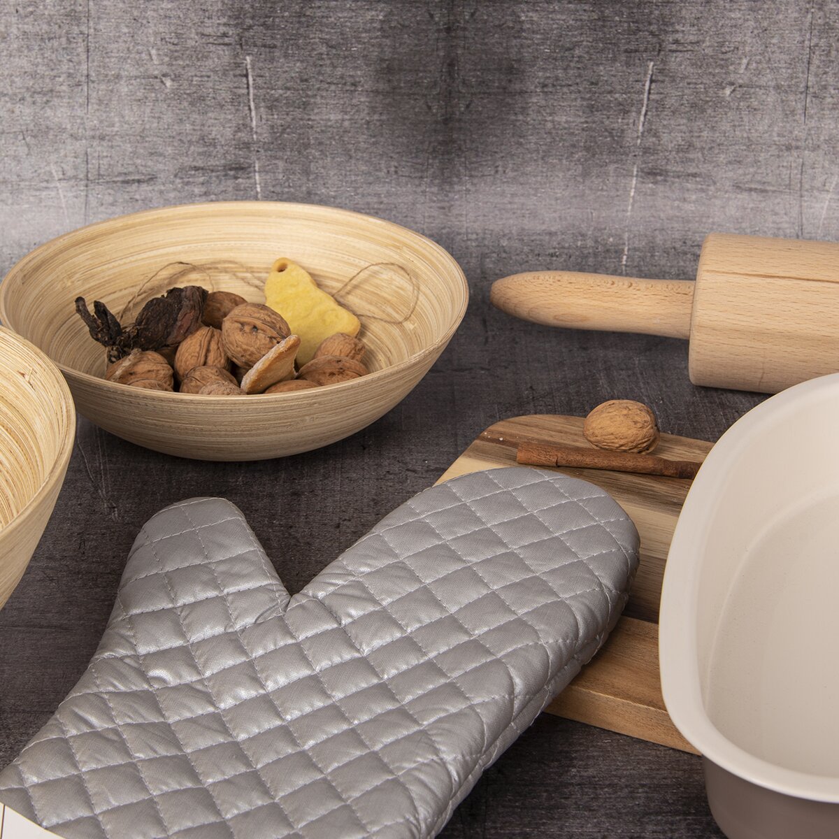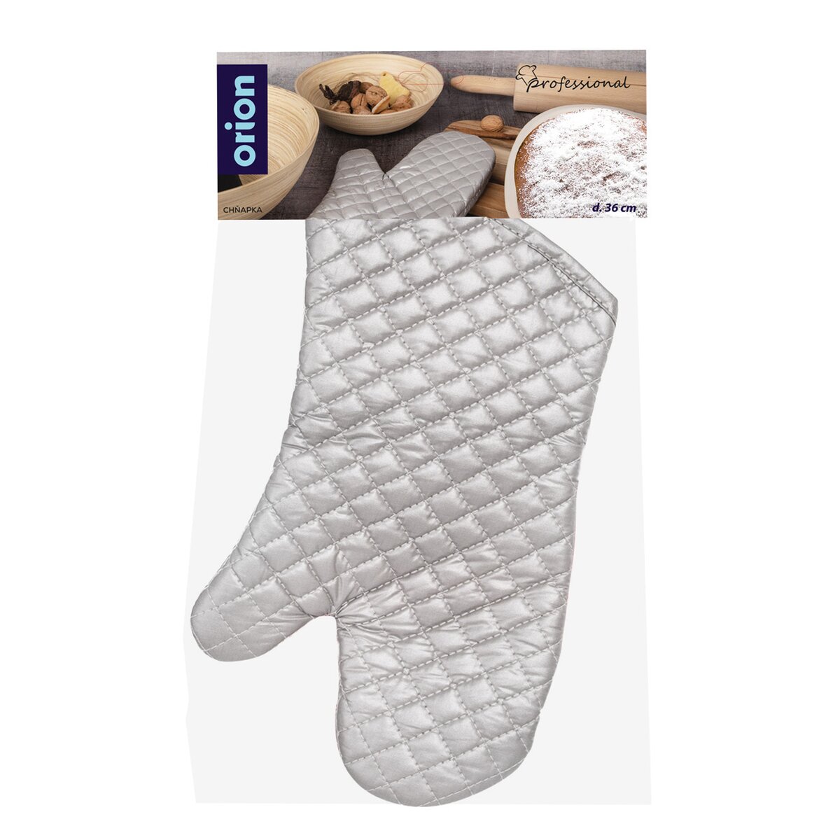 Kód produktu 152172Strieborná teflónová kuchynská rukavica dlhá 36 cm, s pútkom na zavesenie.