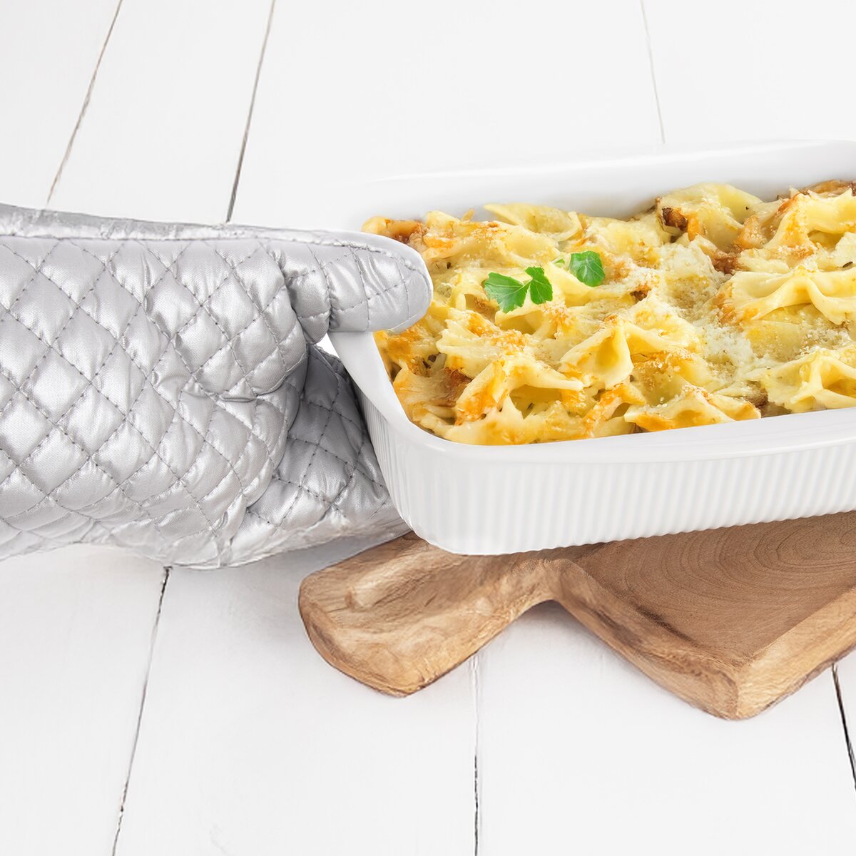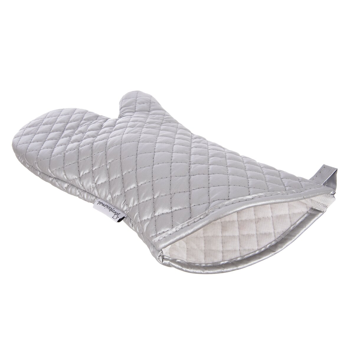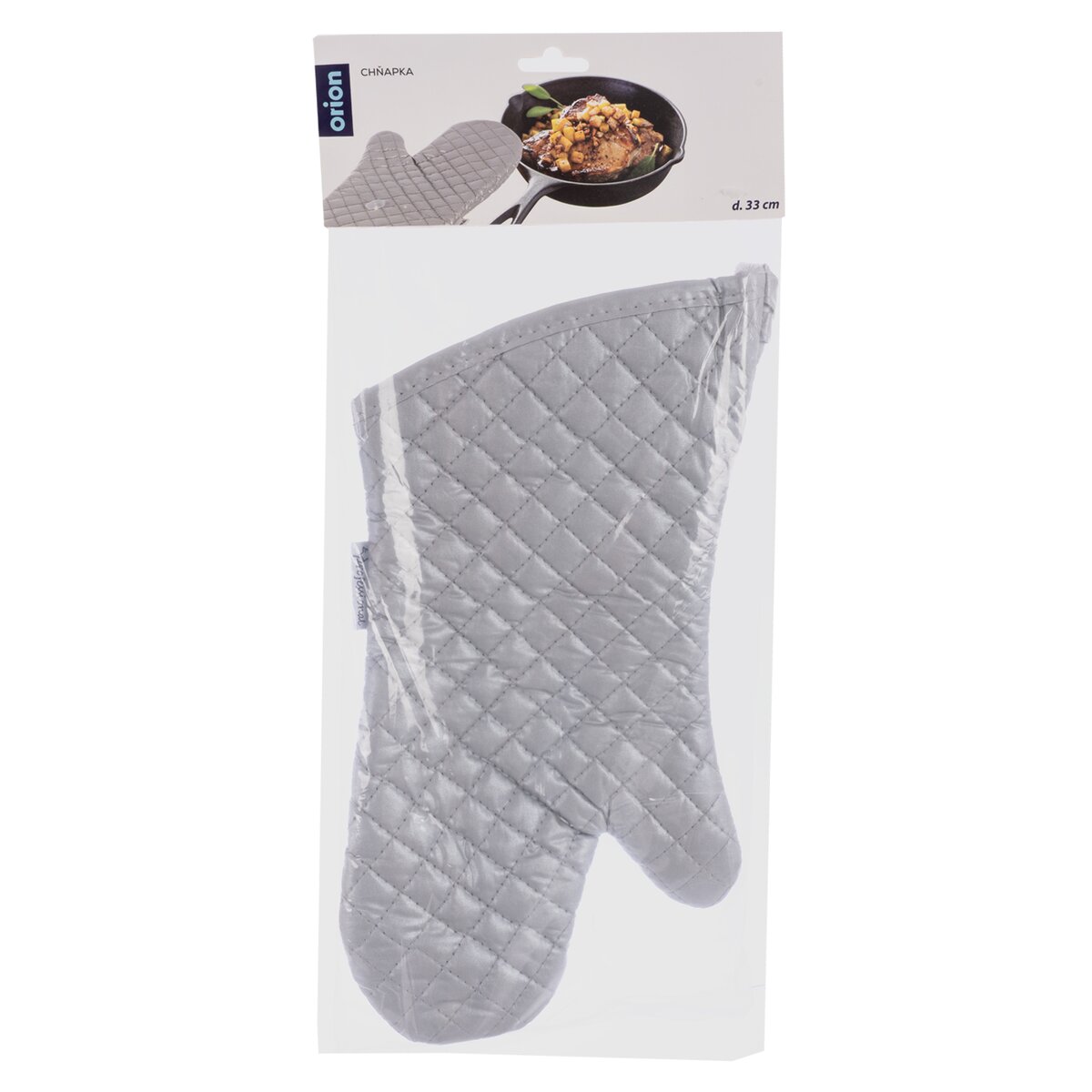 Kód produktu 153929Kuchynská chňapka je ochranná rukavica určená pre bezpečné použitie v domácnosti, najmä pri varení, pečení, manipulácii s riadom v rúre, na grile alebo na platni. Chráni ruku pred tepelnými rizikami spojenými s vybratím či pridržaním horúcich predmetov a riadu, a to vďaka odolnosti proti kontaktnému teplu do 250 °C (maximálne po dobu 15 sekúnd). Chňapka patrí do triedy ochrany 2 a nie je vhodná na kontakt s priamym plameňom. V prípade potreby ju možno očistiť iba navlhčenou hubkou alebo handričkou. Nesmie sa prať, chemicky čistiť, bieliť, žehliť ani sušiť v sušičke. Vlhkú chňapku nenechávajte schnúť priamo na tepelnom zdroji. Pre ľahké skladovanie je možné ju zavesiť za pútko. Materiál: vrchný materiál bavlna, nástrek polyetylakrylát, výplň: bavlna, polyester, viskóza, podšívka: 100% polyester. Rozmery: 33x18 cm.