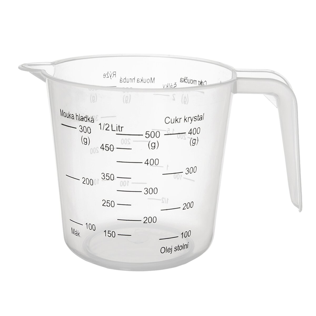 Kód produktu 120538Plastová transparentná odmerka v objeme 0,5 l s praktickou výlevkou a uchom.