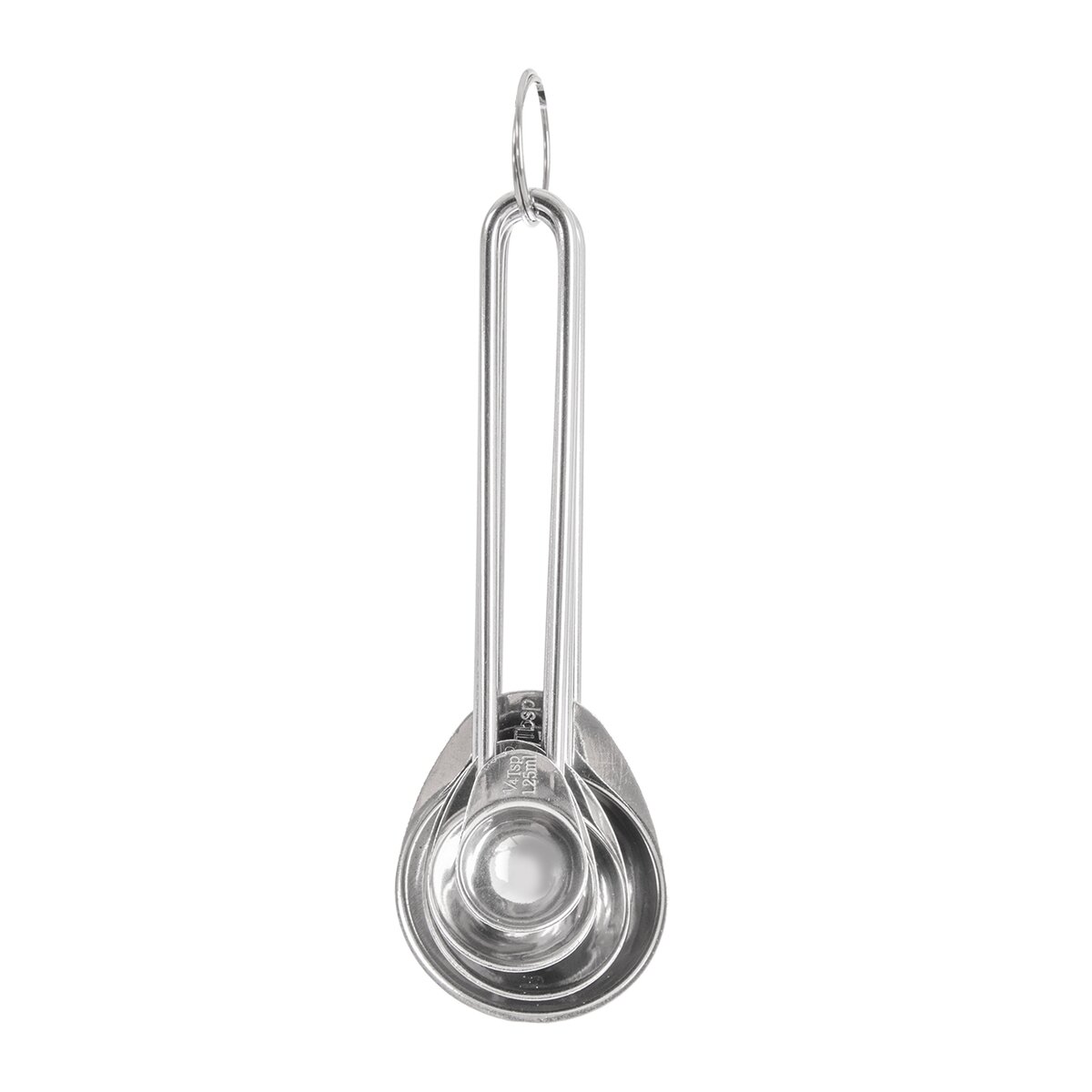 Sú vyrobené z nerezu a zavesené na krúžku, navyše do seba zapadajú. Hodí sa na odmeriavanie kypriaceho prášku, sódy, sušeného droždia, mletej kávy, vanilkového extraktu, korenia a rôznych dochucovadiel.
