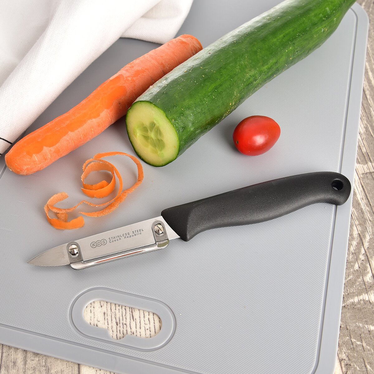 Viac informáciíŠkrabka na zemiaky, ovocie a zeleninu českej výroby nájde v kuchyni široké uplatnenie. Čepeľ je vyrobená z kvalitnej nehrdzavejúcej ocele, na rukoväť je použitá zdravotne nezávadná plastická hmota - tepelná odolnosť do 100 °C. Je odolná proti nárazu. Pri správnom brúsení ocieľkou alebo brúskou je zaručená funkcia výrobku min. 10 rokov.