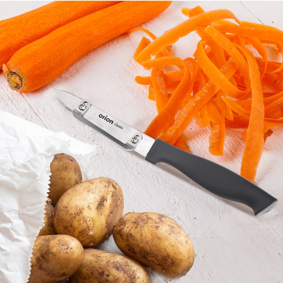 Ide vlastne o malý kuchynský nôž v celkovej dĺžke 19 cm, ku ktorému je pripevnený nadstavec, upevnený dvoma skrutkami. Slúži na lúpanie zemiakov, uhorky, jabĺk, na plátkovanie cukety, mrkvy a pod. do zeleninových šalátov, cestovín a zapečených jedál.