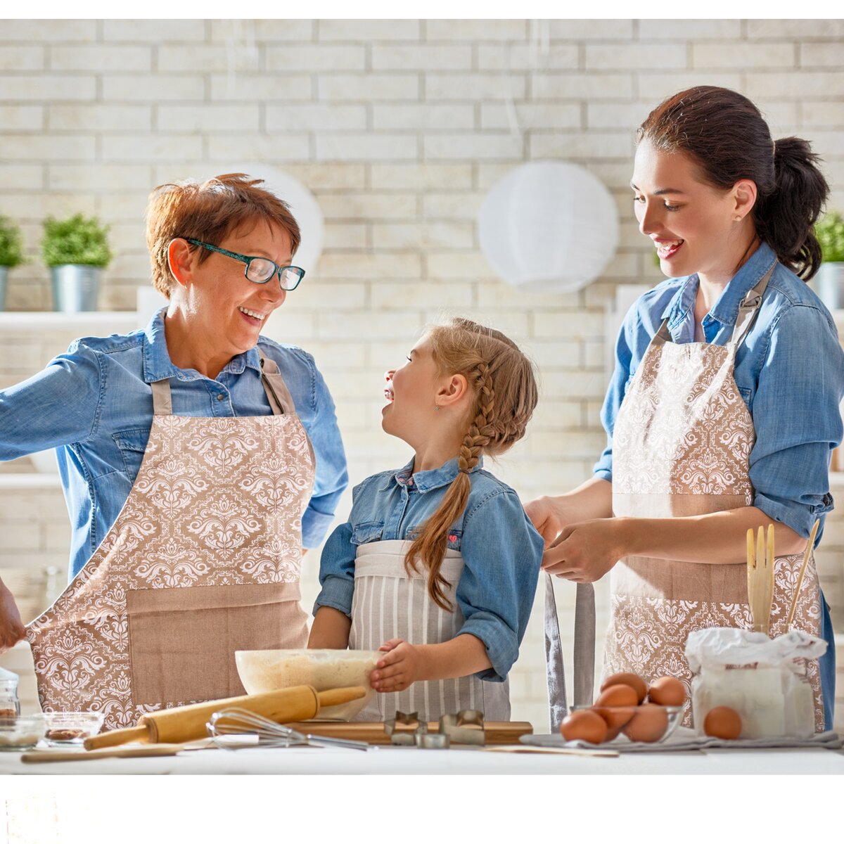 Kód produktu 960366Béžová bavlnená zástera do kuchyne s elegantným vzorom, s vreckom a nastaviteľným viazaním okolo krku.