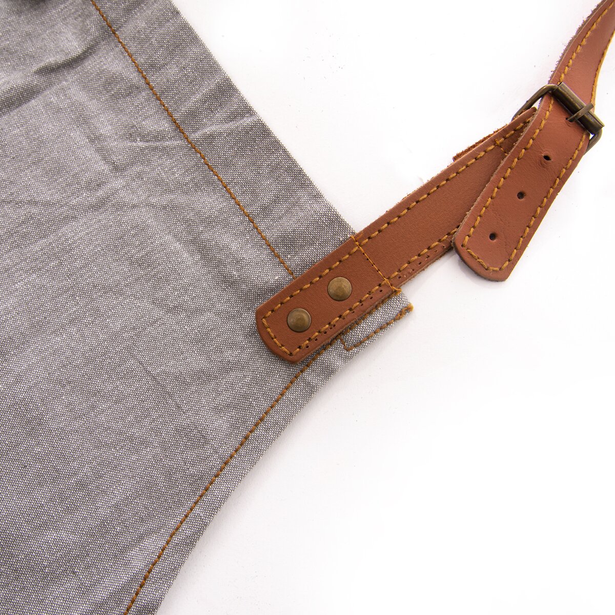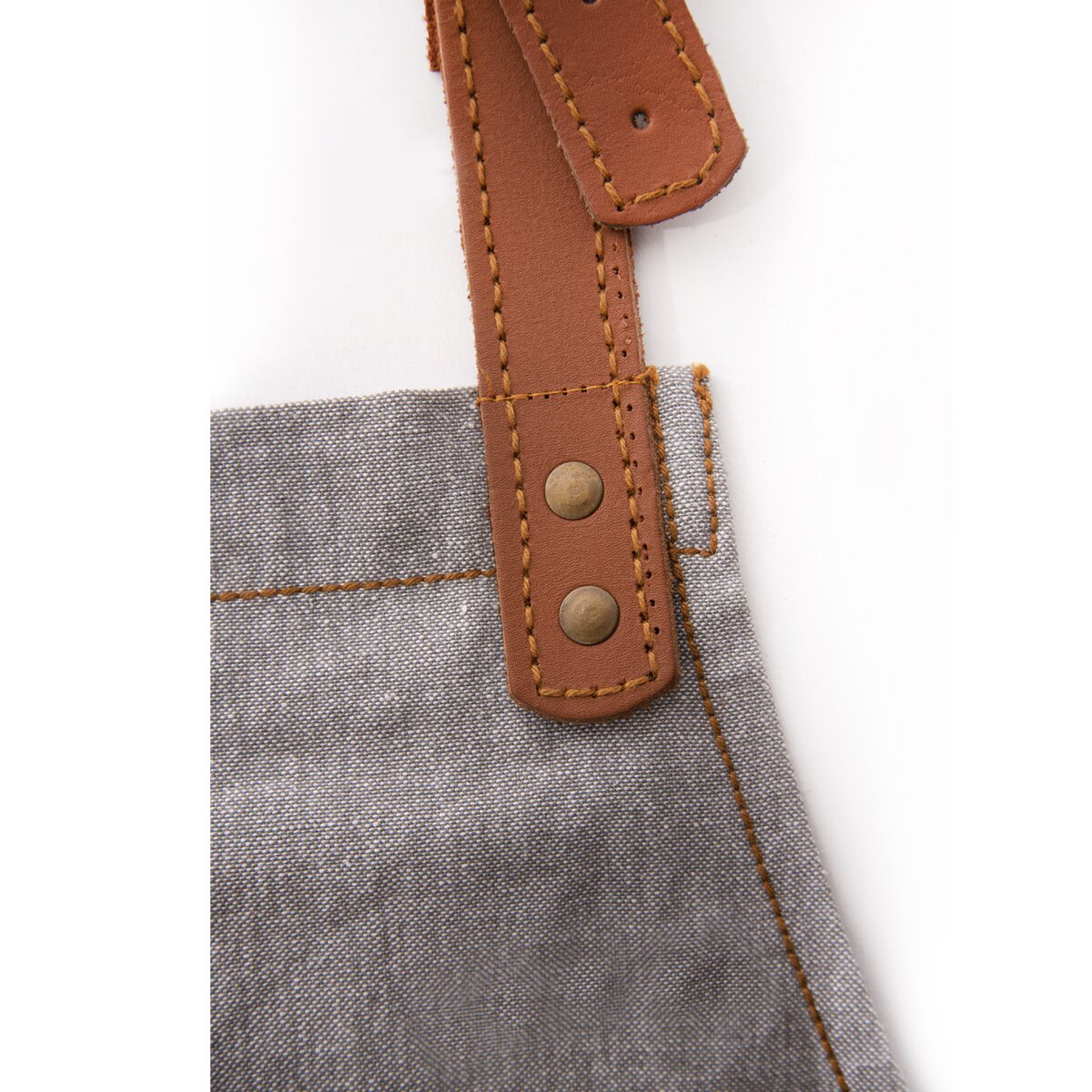 Kód produktu 960370Bavlnená kuchynská zástera s koženými detailmi, vreckom a nastaviteľnou prackou okolo krku.