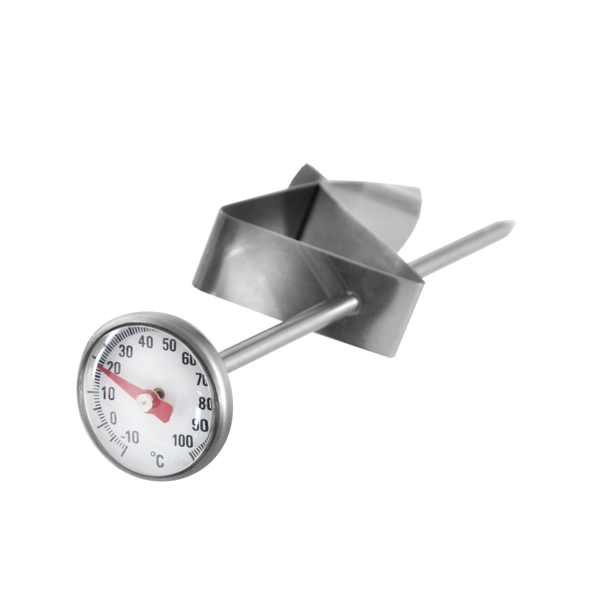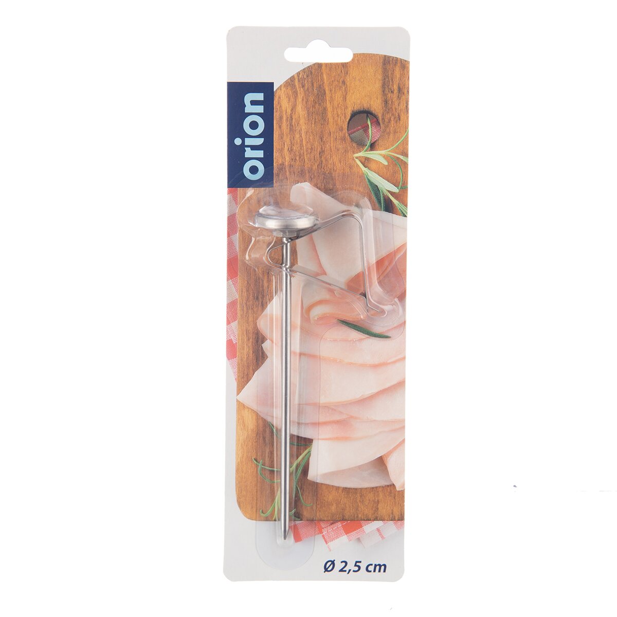 Kód produktu 152846Okrúhly nerezový teplomer do mäsa s priemerom ciferníka 2,5 cm. Meria teplotu v rozsahu -10 °C až +100 °C. Súčasťou je aj praktický klip.