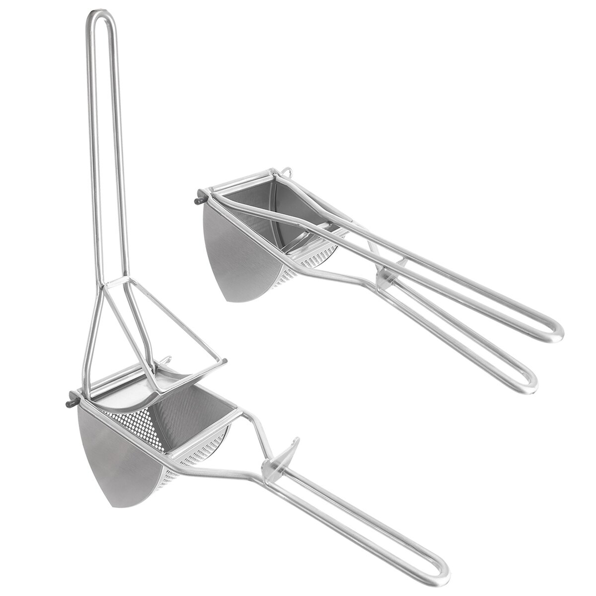 Viac informáciíAk máte radi jemné šťuchané zemiaky, zemiakovú kašu, knedle či placky, tento pomocník vám ich zjednoduší prípravu. Ručný nerezový lis na zemiaky sa výborne hodí na lisovanie varených zemiakov. Môžete ho využiť aj na pasírovanie varenej zeleniny na pyré alebo zrelých paradajok na pretlak. Priemer otvorov je 2 mm.