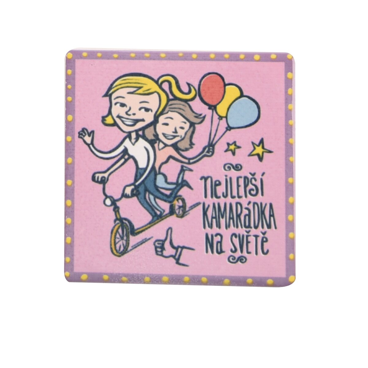 Kód produktu 820251Magnet s obrázkem a popisem NEJLEPŠÍ KAMARÁDKA NA SVĚTĚ. Materiál: keramika, magnet. Rozměry: 6x6 cm.