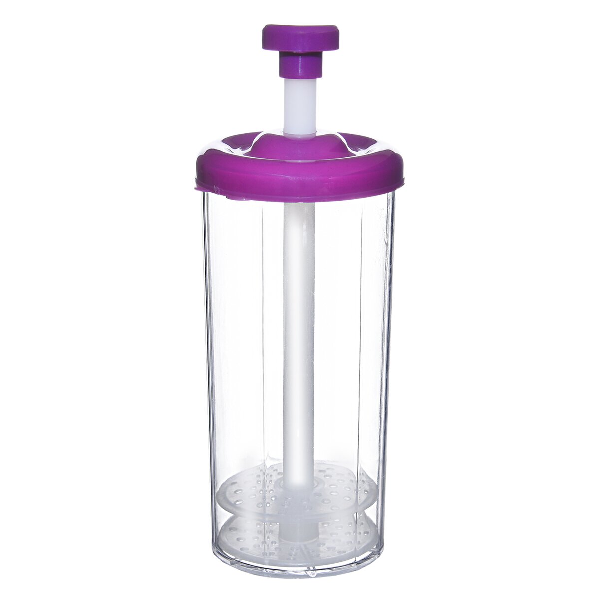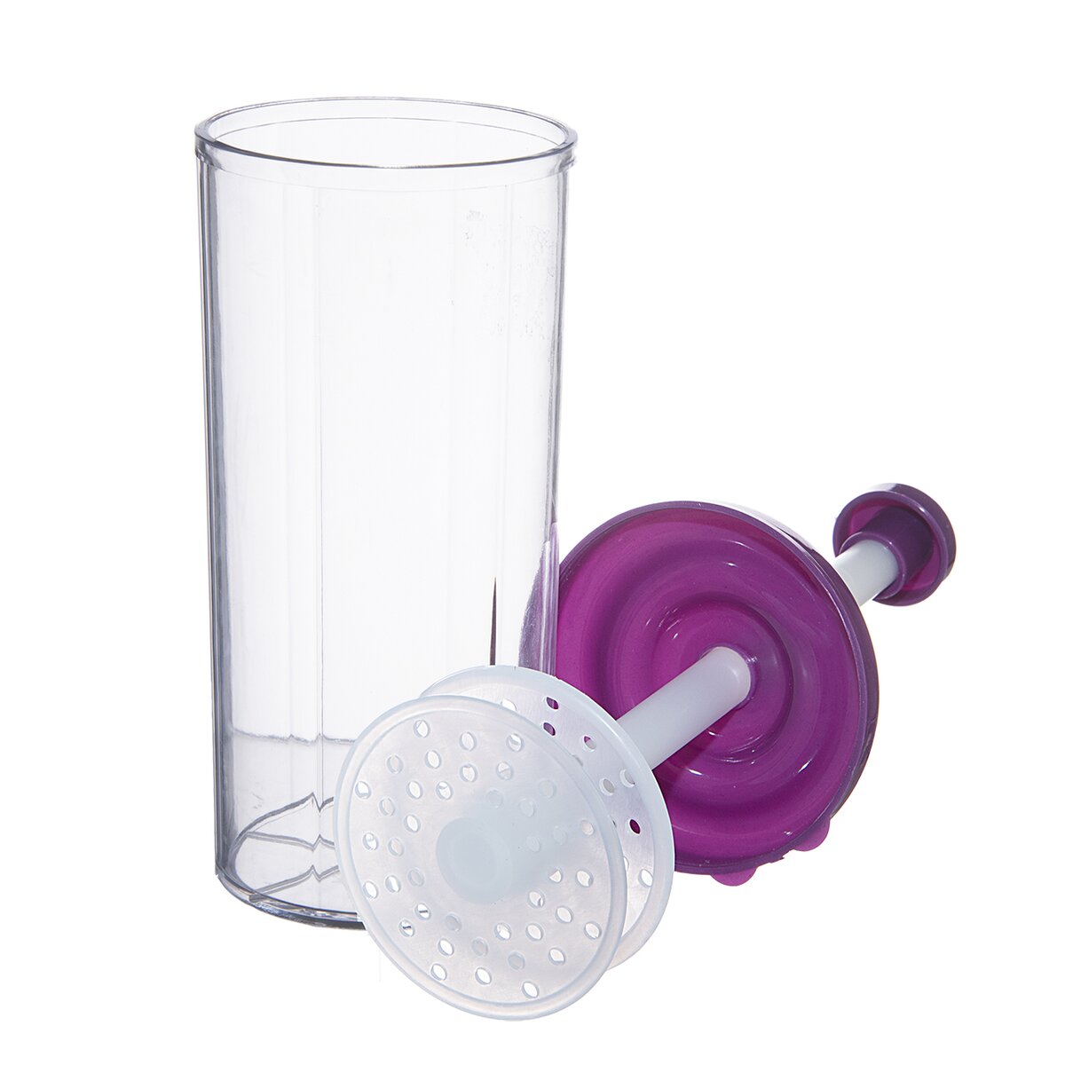 Po vložení suroviny, smotany na šľahanie, vajec s olejom, bielkov a pod. stačí uzavrieť a pohybom piestu hore a dole dôjde k vyšľahaniu vložených tekutín. Jednoduchá údržba - stačí opláchnuť prúdom vody alebo ho rozložený umyť v umývačke riadu. Vyrobený z plastu PS, fialová časť a vnútro z plastu PE.