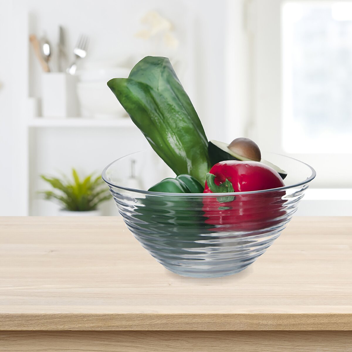 Viac informáciíSklenená miska trojuholníkového tvaru má objem 2 litre. Z vonkajšej strany má plastické vodorovné vrúbky, ktoré nielenže vyzerajú veľmi dobre, ale miska sa vďaka nim lepšie drží, prenáša. Hodí sa ako na podávanie zeleninového, zemiakového či cestovinového šalátu, tak aj ako dekoratívna misa na ovocie na kuchynskom stole.