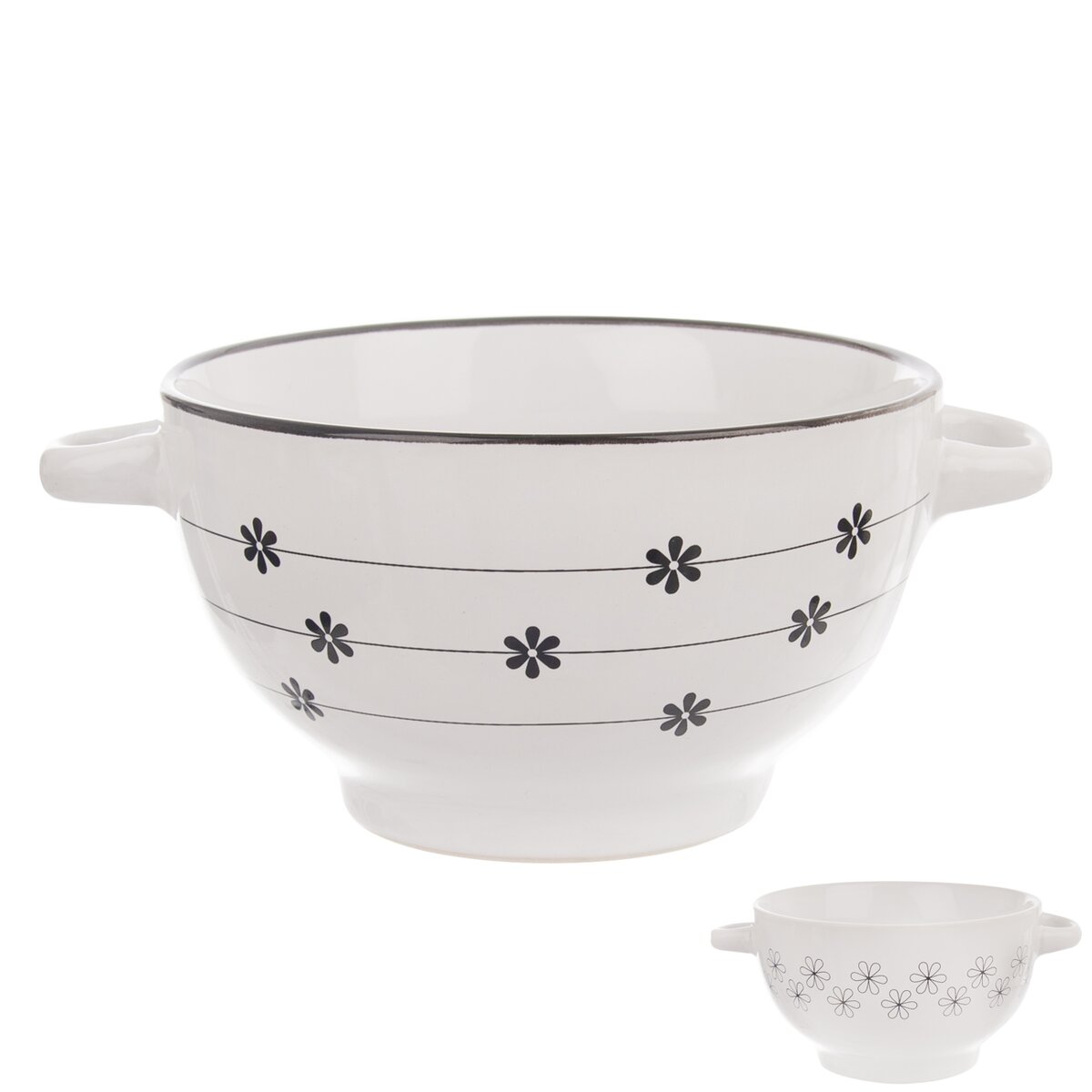 Kód produktu 128418Keramická polievková miska s objemom 0,75 l s dvoma ušami a v dekore FLOWER.