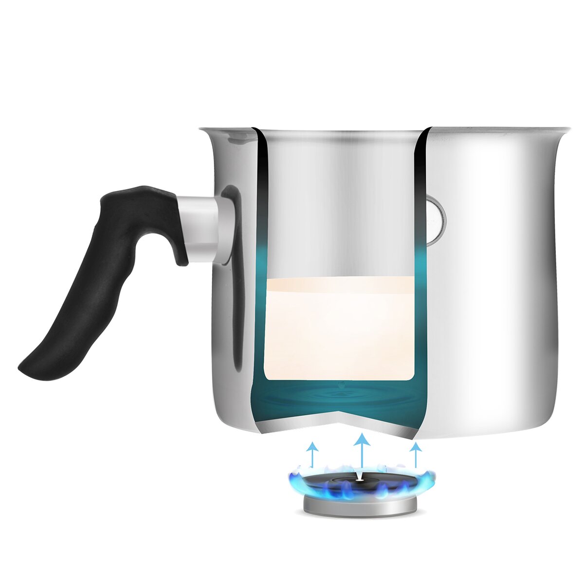 Dvojstenný mliekovar je nádoba z kvalitnej nehrdzavejúcej ocele, medzi jeho steny sa otvorom pod píšťalkou naleje voda, cca 0,3-0,5 l, ktorá vás upozorní na bod varu.