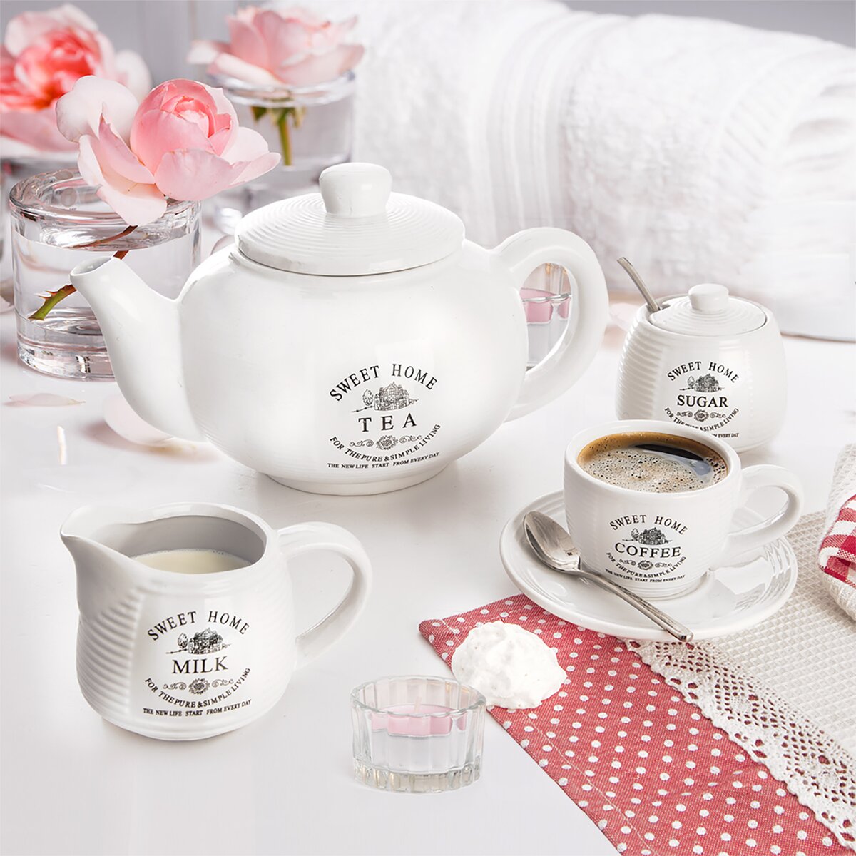Ak chcete mať váš riad v kuchyni perfektne zladený, pozrite sa aj na ďalšie produkty z kolekcie SWEET HOME. Nájdete tu napríklad hrnček s tanierikom, poháre, cukorničku alebo dochucovaciu súpravu koreničky so soľničkou.Vlastnosti produktu