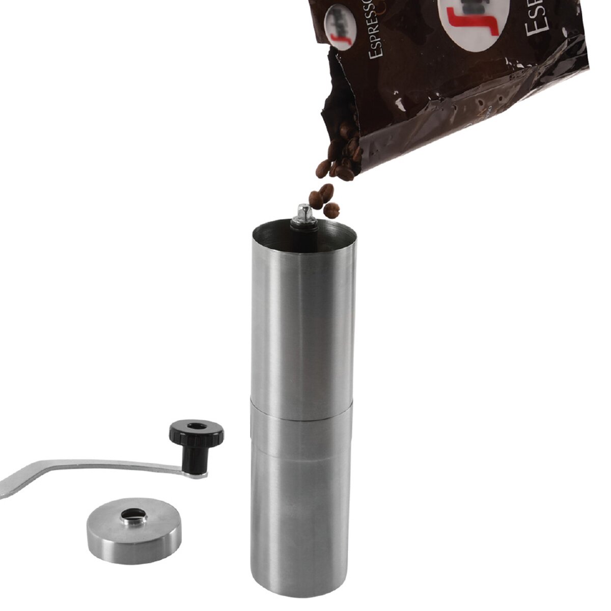 Kód produktu 130191Ručný nerezový mlynček na kávu moderného tvaru čerstvo namelie zrnkovú kávu. Zaručuje ľahké a perfektné mletie kávy vďaka keramickému mleciemu mechanizmu.