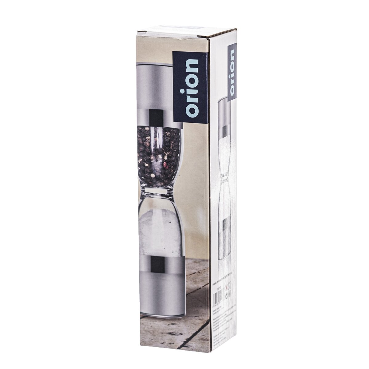Dvojitý nerezový mlynček na korenie alebo soľ s transparentnou plastovou časťou, ktorý ľahko čerstvo namelie korenie alebo pri dokončovaní pokrmov, ale dochutí aj hotové jedlá priamo pri stole.