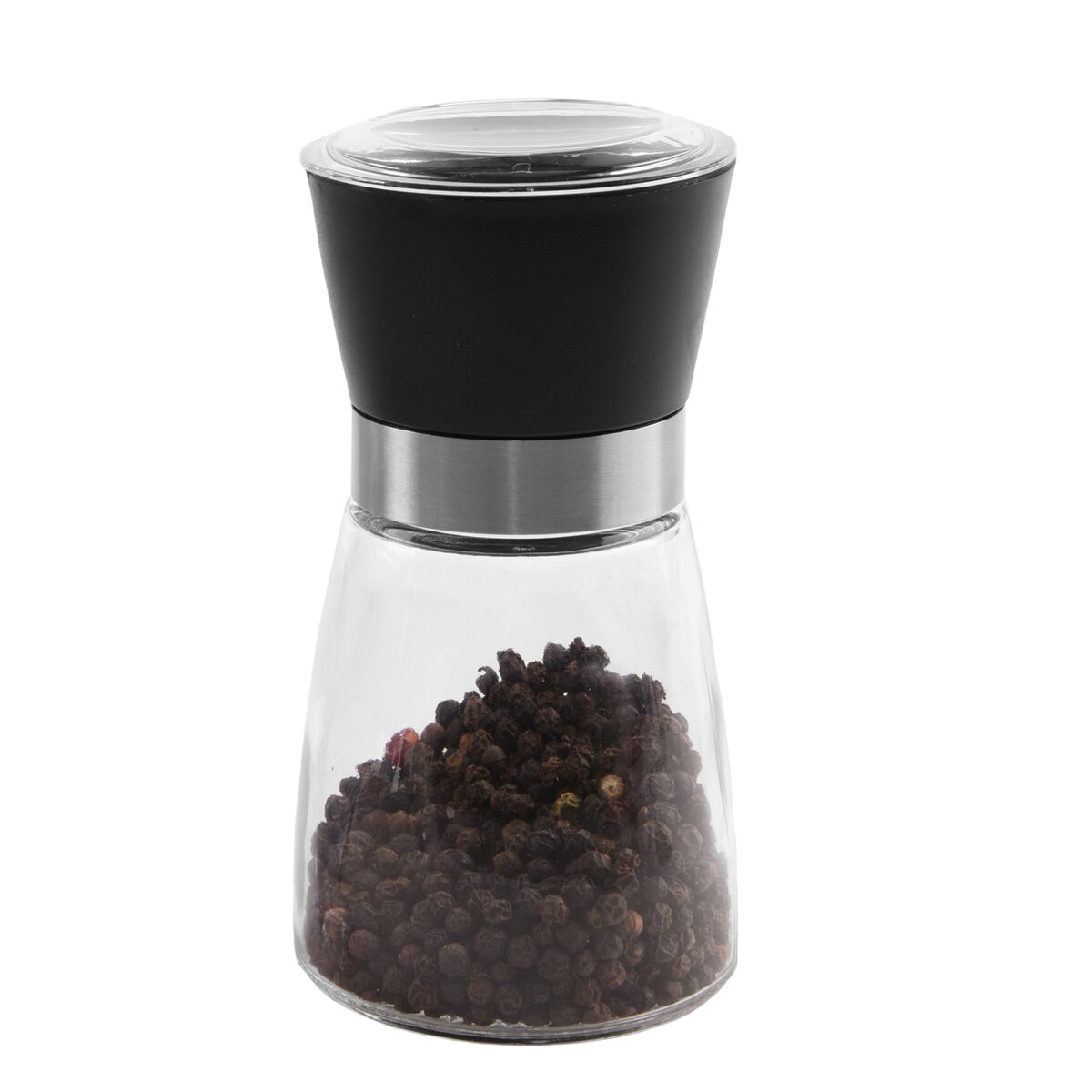 Kód produktu 130185Mechanický mlynček so sklenenou časťou na korenie alebo soľ, určený na dochutenie pokrmov. Má keramický mlecí mechanizmus a možnosť nastaviť hrubosť mletia.