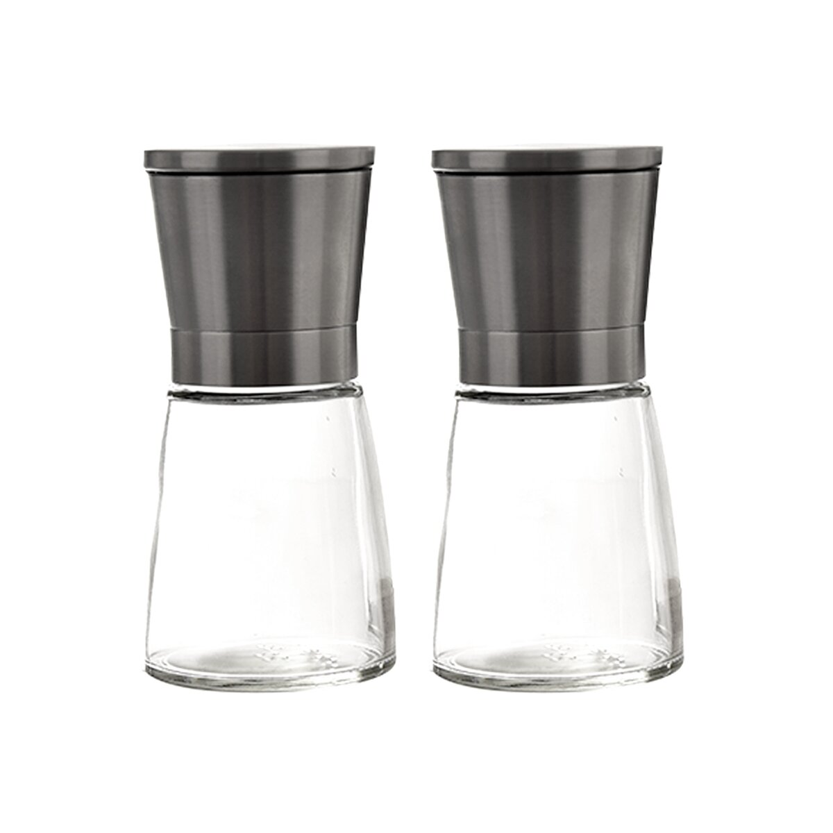 Viac informáciíSada nerezových mlynčekov na korenie a soľ s transparentnou sklenenou časťou, ktoré ľahko namelú korenie pri príprave pokrmov, ale dochutia aj hotové jedlá priamo pri stole.