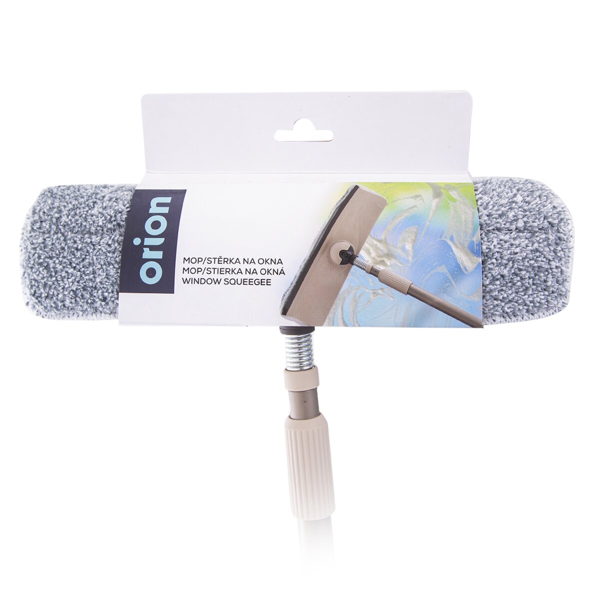 Kód produktu 720733Mop so stierkou na čistenie okien či zrkadiel so snímateľným návlekom a teleskopickou tyčou.