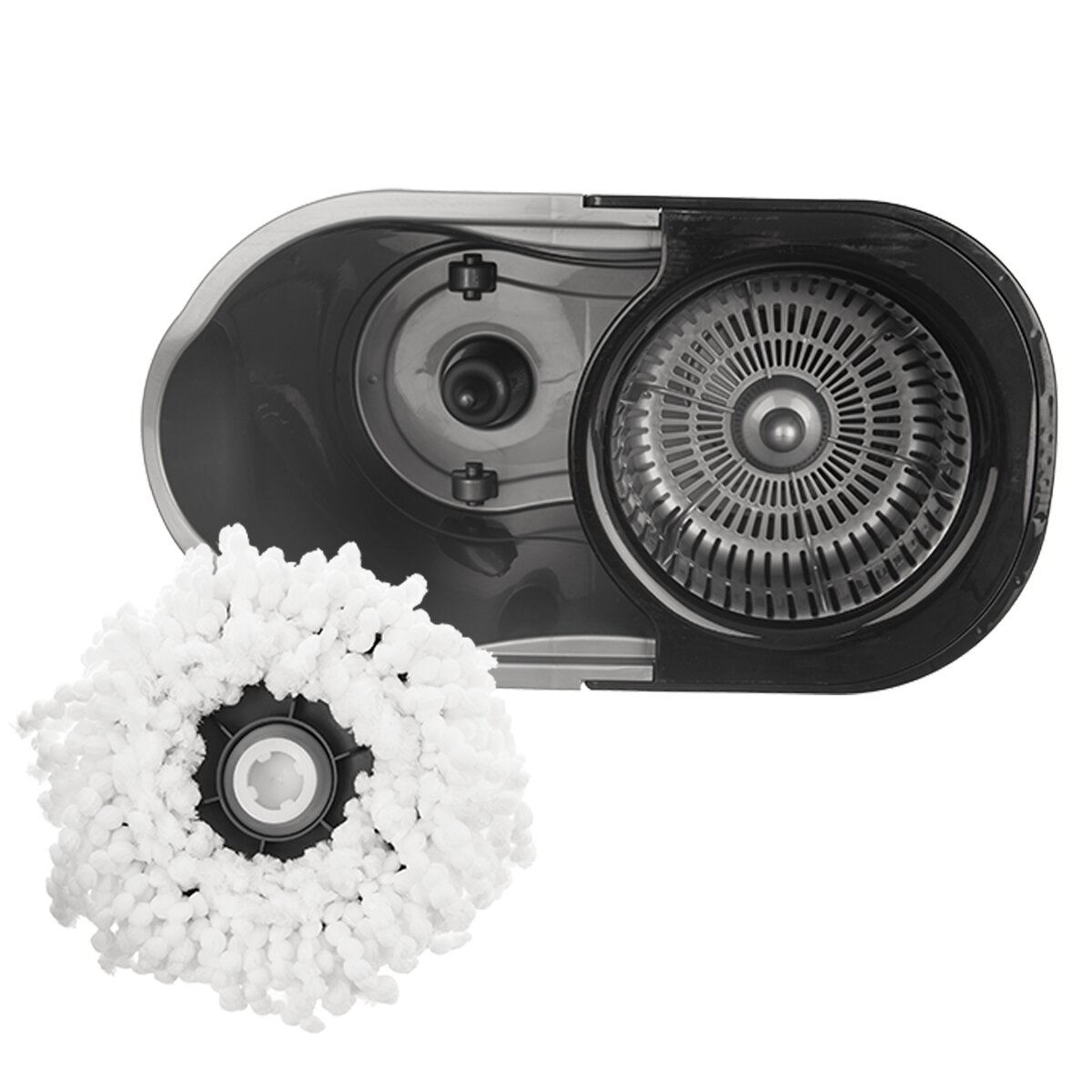 Mop stačí namočiť vo vedre s vodou so saponátom, potom preniesť do žmýkacieho koša a vytlačiť prebytočnú vodu. To sa dá urobiť ľahko, odistením tyče (biela páčka v dolnej tretine sa preklopí dole) a pohybom rukoväte hore a dole dôjde k rotácii mopu a košíka. Mop tak pripravíte na stieranie bez predkláňania a namáčania rúk, z koncovky z mikrovlákna sa nedostane prebytočná voda, ktorá nesvedčí napr. parketám. Mikrovlákno disponuje výbornou sacou schopnosťou a nezanecháva šmuhy.