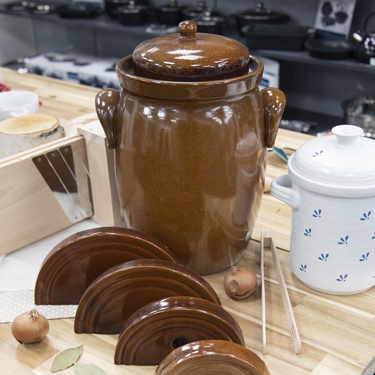 Kód produktu 113197Glazovaný keramický hrniec s pokrievkou od českého výrobcu, vhodný na nakladanie kapusty, kvašákov, utopencov a ďalších pochúťok. Je opatrený žliabkom na vodu, ktorý umožní správny proces kvasenia.