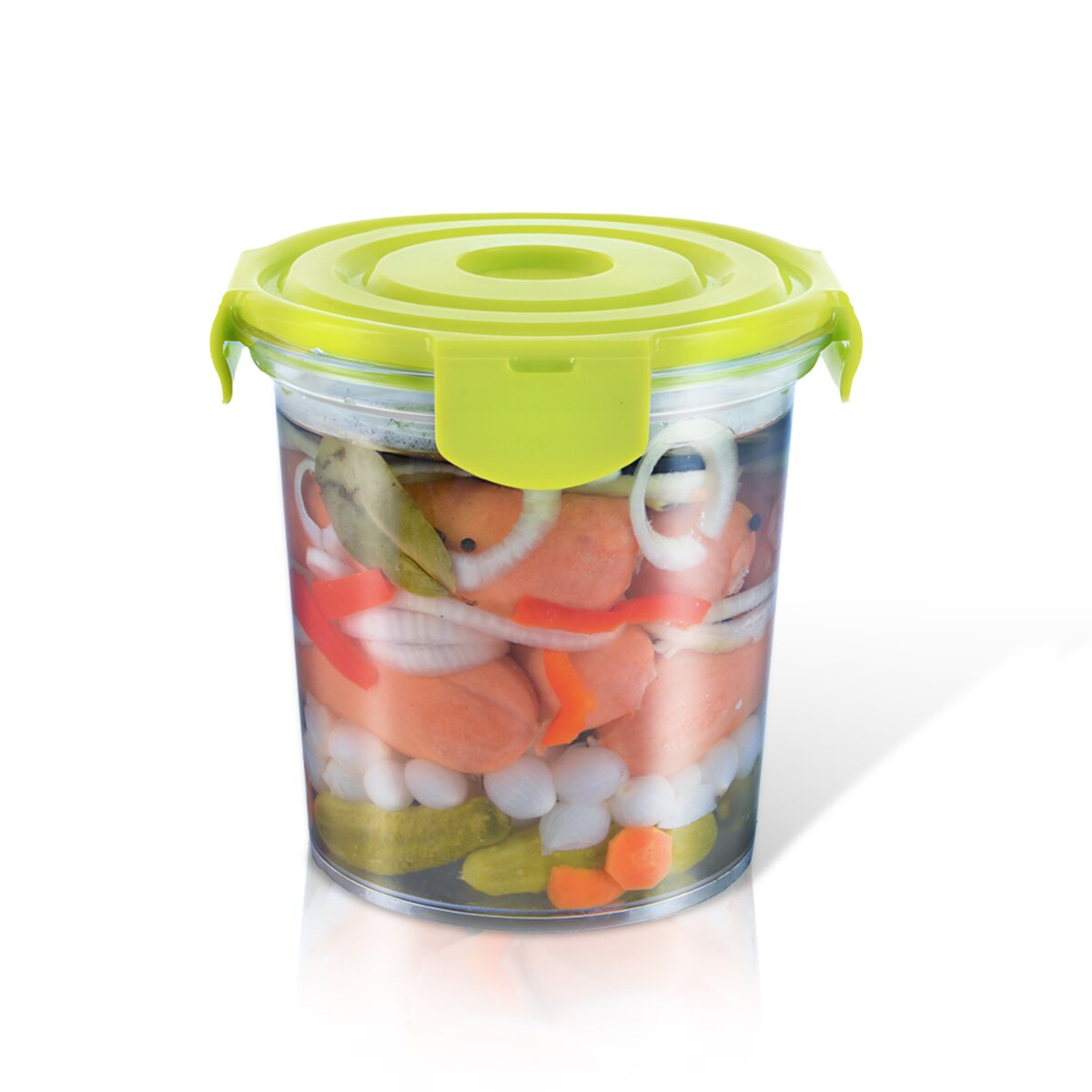 Kód produktu 124651Plastová transparentná dóza s objemom 1,8 l na marinovanie a nakladanie potravín. Súčasťou je aj pružinové viečko opatrené 4 pevnými klipmi, ktoré udržia potraviny ponorené v náleve alebo oleji.