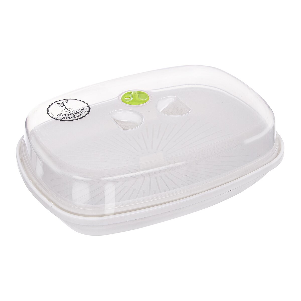 Návod, ako misku používať: Vybrané semienka namočíte na 24 hodín do vody. Po uplynutí tejto doby ich scedíte cez plastové sieťko, ktoré je súčasťou misky, a rovnomerne ich po ňom rozprestrite. Do misky pridajte trochu vody, sitko do nej znova položte a prikryte vekom s otvoreným horným otvorom. Potom nádobu umiestnite na teplé miesto, kam však nedopadá priame slnečné svetlo. Semená dvakrát denne preplachujte, samotné klíčky sa zberajú cca 5–8 deň, záleží však na danom druhu.- Materiál: plast